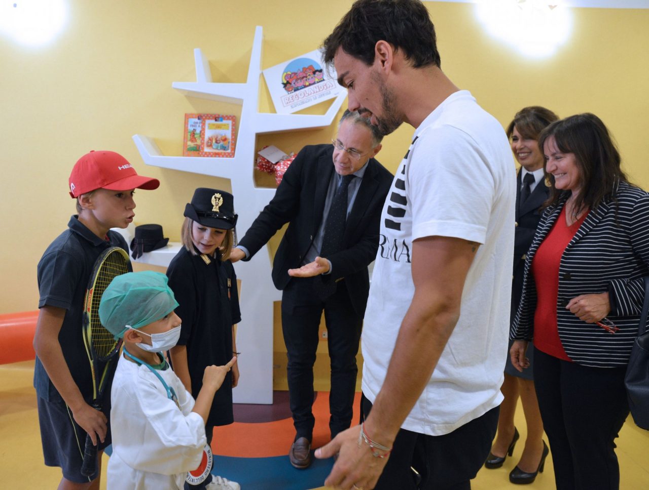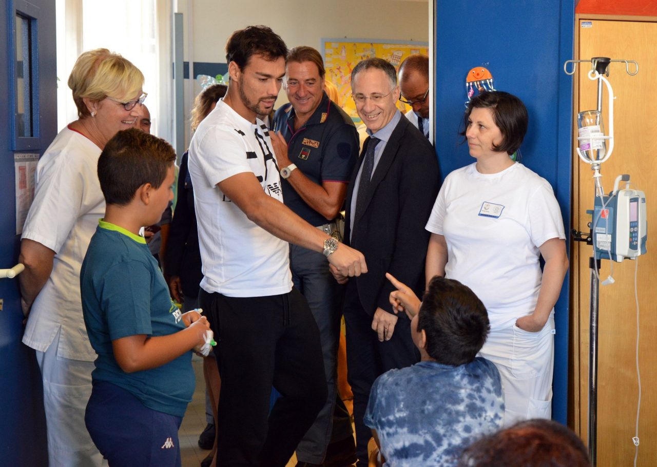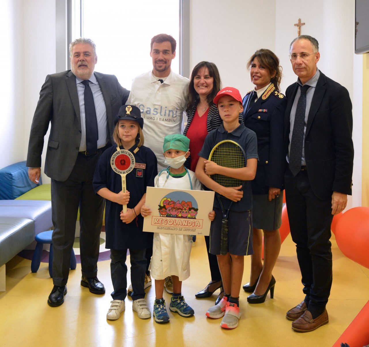 Il campione Fabio Fognini ha visitato i bambini del reparto di Chirurgia e poi quelli dell’Ospedale di Giorno ai quali ha donato palline da tennis autografate, e ha indossato la nuova maglia dedicata ai testimonial del Gaslini, al termine dell’incontro è stata scattata la prima foto-ricordo che verrà esposta nella Ludoteca del pad 20, che da oggi prende il nome di “Regolandia”.