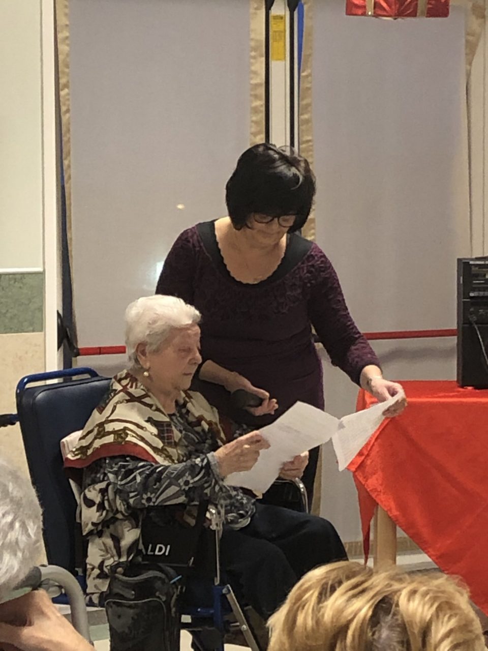 Solitamente si entra in una residenza per anziani con l’idea di dover portare qualcosa agli ospiti, quest’anno proprio in forza di questi legami abbiamo proposto ai nostri nonni di essere loro i protagonisti ed in prima persona, rivolgendosi alle varie figure professionali, augurare loro buone feste.