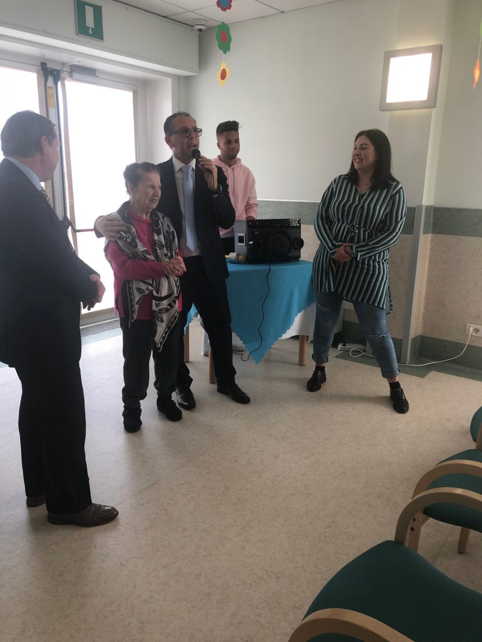 Hanno voluto partecipare a questo gioioso momento, anche altri amici della struttura: Federica Cozza, Sergio Tommasini e Andrea Artioli, che simpaticamente hanno interagito con i nostri ospiti, rispondendo alle loro domande: come immaginano l’organizzazione di una struttura per anziani, come considerano la nostra casa, il personale, nonché il direttore Stefano Faraldi.