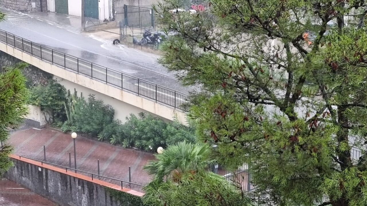 E’ un fiume d’acqua quello che sta scendendo in questi istanti da Strada Solaro a Sanremo. Tombini saltati a acqua che scende copiosa lungo tutta la strada che dalla collina di San Lorenzo porta in centro città.