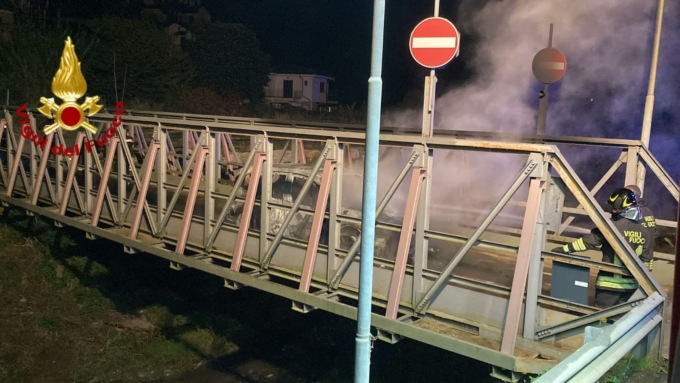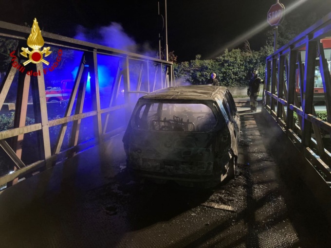 L’auto, però, ha preso fuoco poco distante, sul ponte in ferro