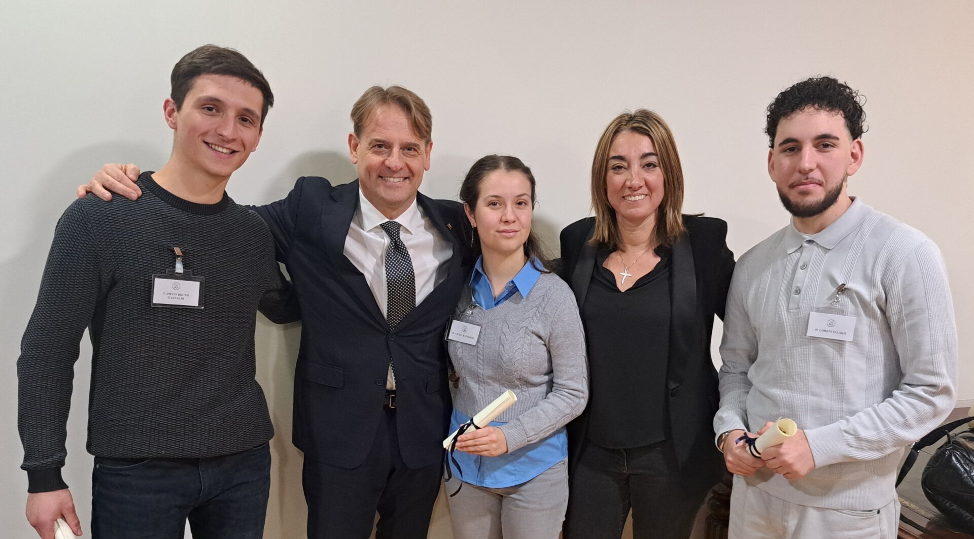 Diego Bruno Gastaldi, Giulia Raimondo e Lorenco Lako sono i tre studenti del Liceo Scientifico Vieusseux di Imperia, accompagnati dalla professoressa Sofia Martino, premiati in Consiglio Regionale per i loro scritti sul ‘Giorno del ricordo’.