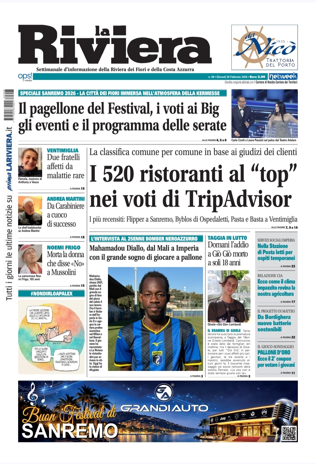 Il nuovo numero de La Riviera è in edicola come ogni giovedì da 35 anni con interviste, approfondimenti e notizie esclusive dalla provincia di Imperia. Eccone alcune