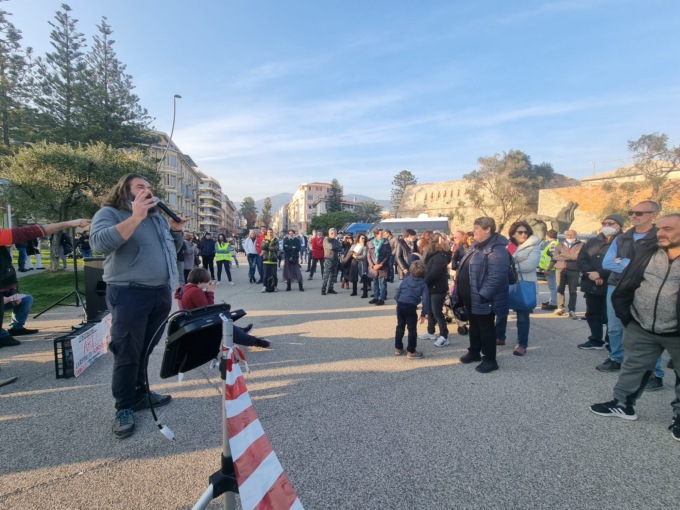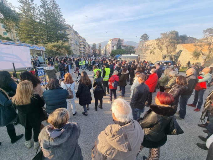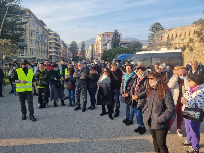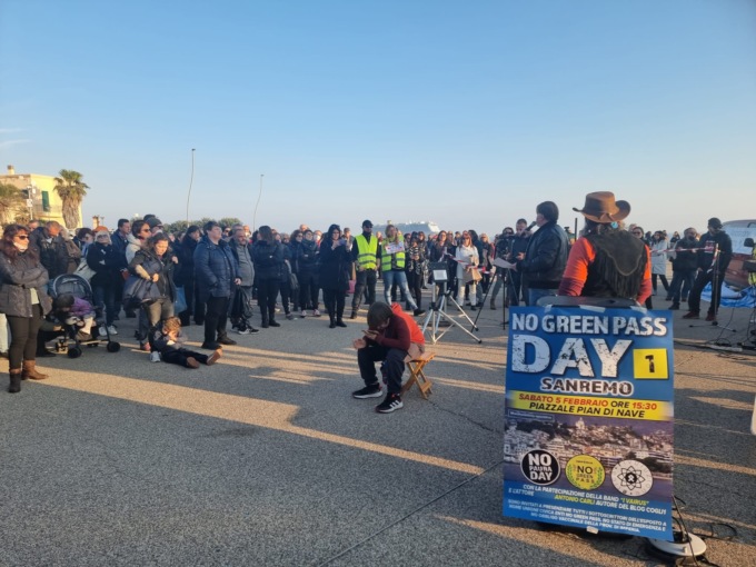 Sono un centinaio i manifestanti, che verso le 15.30, a Pian di nave di Sanremo, hanno partecipato al “No Green pass day”, per protestare contro l’obbligo di “certificato verde”. Tra gli ospiti anche l’attore imperiese Carlo Carli. Diego Costacurta, uno degli organizzatori dell’evento, che già nei giorni scorsi, a Imperia, ha depositato una petizione con raccolta di oltre cinquemila firme, ha duramente attaccato il “siparietto” di Fiorello, alla prima serata del Festival, accusato da più parti di aver preso in giro i complottisti del vaccino, facendo risentire anche chi complottista non è ed ha riportato effetti collaterali. La manifestazione si è svolta in maniera pacifica, davanti a un nutrito gruppo di forze dell’ordine, polizia e carabinieri. Accuse sono state mosse anche nei confronti delle istituzioni imperiesi.