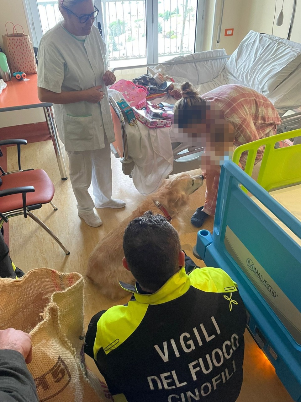 la golden retriever di 10 anni dell’unità cinofila del comando di Imperia. “È meraviglioso vedere come i vigili del fuoco si impegnino a portare un po’ di magia del Natale ai bambini in ospedale. Sicuramente i piccoli pazienti hanno apprezzato la visita e i regali”, è il commento che arriva dall’ospedale.