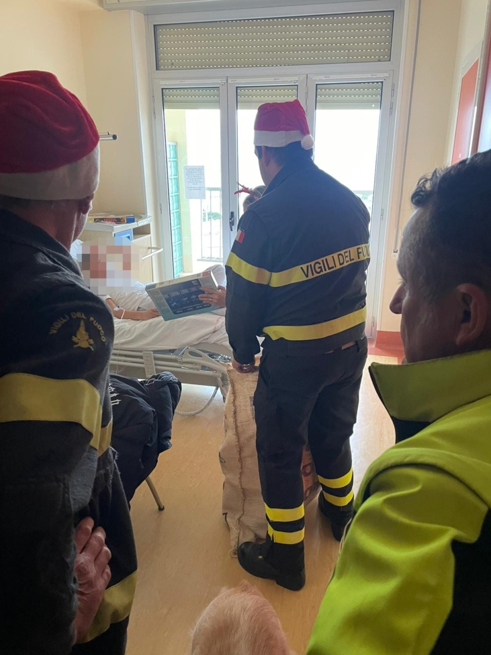 I vigili del fuoco portano gioie e regali ai bambini ricoverati in Pediatria a Imperia