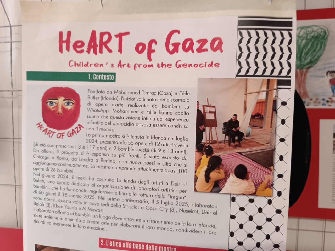 La mostra Heart of Gaza nasce dalla collaborazione del palestinese (in Italia dal 2025 con una borsa di studio) Mohammed Timraz e dell’illustratrice irlandese Féile Butler, inizialmente come scambio di immagini realizzate dai bimbi nella Striscia di Gaza su WhatsApp, poi l’idea di condividere l’esperienza intima del genocidio con il mondo. La prima mostra (luglio 2024) ha raccolto 55 immagini di 12 ragazzini dai 3 ai 17 anni e due giovani vittime del conflitto. Da allora il progetto si è espanso, esposto a Chicago, Londra e Berlino. L’allestimento attuale conta circa 100 disegni. Quelli esposti a Sanremo sono copie degli originali, che girano in tutta Europa. La mostra a Sanremo visitabile dal 18 al 28 febbraio, dalle 16:00 alle 20:00.