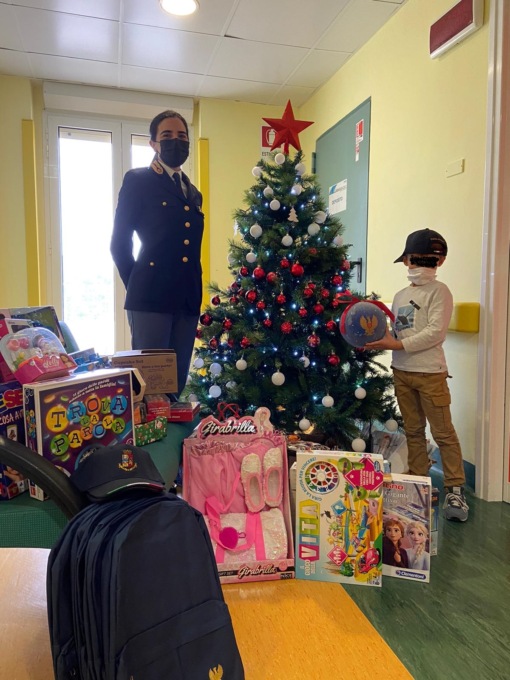 Nell’ambito della Polizia di prossimità, infatti, la Questura di Imperia ha organizzato una cerimonia di consegna dei regali ai bambini, con l’apposizione di un simbolo natalizio all’albero del reparto ospedaliero. ”