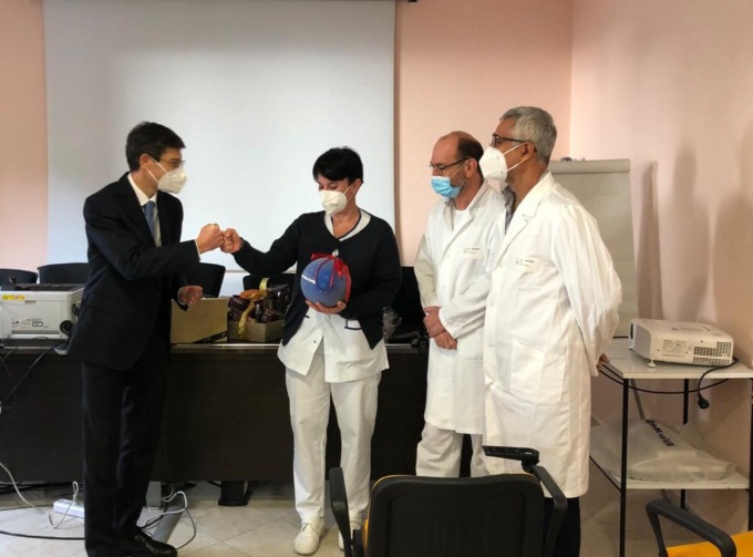 Abbiamo anche portato una nostra palla natalizia, un simbolo e un augurio che, in questo momento viene sistemata in diversi alberi in tutta Italia ma noi abbiamo deciso di metterla sull’albero dell’ospedale come segno di affetto ai piccoli degenti e a tutti gli altri”.