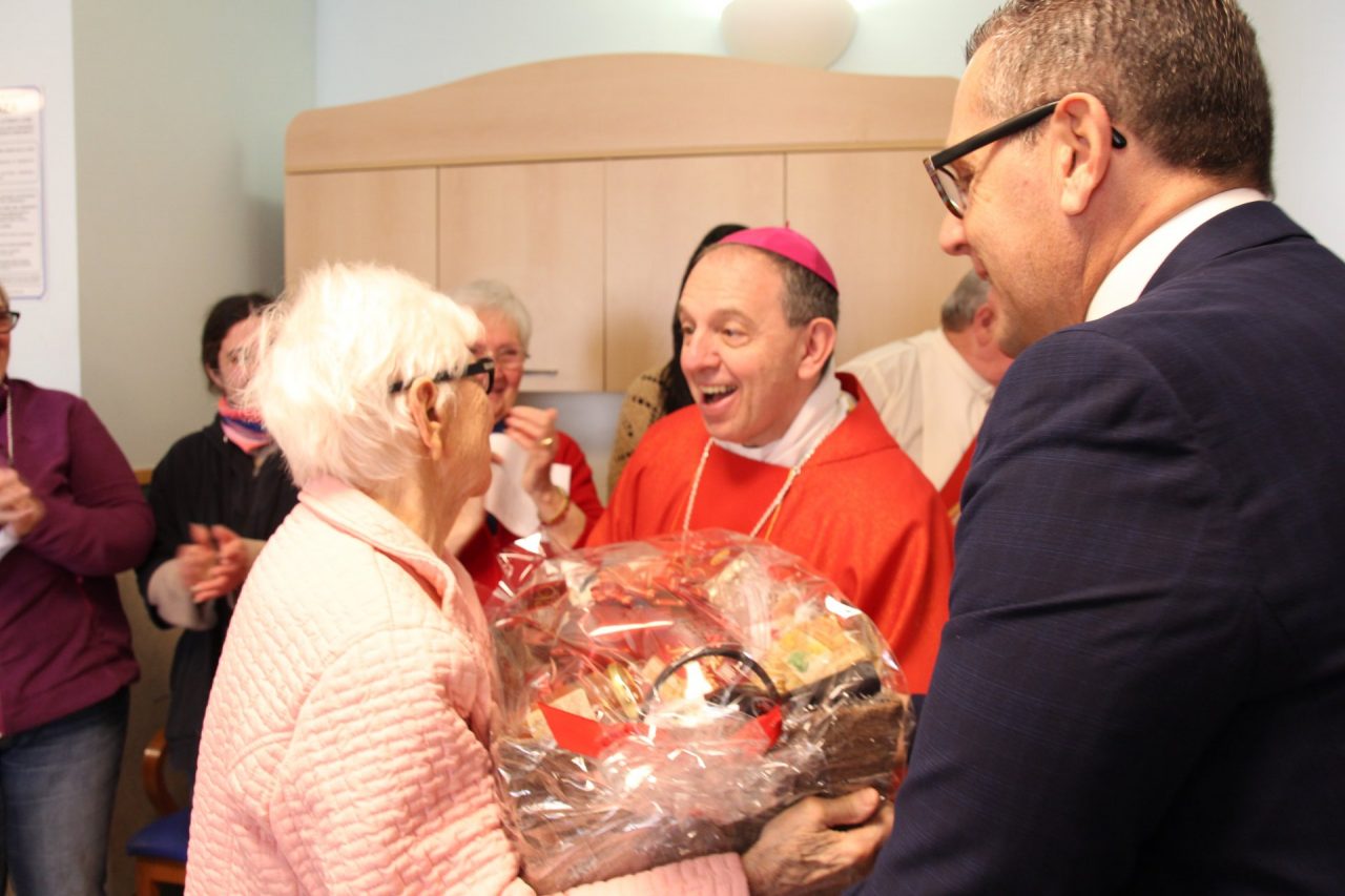 Il direttore Stefano Faraldi ha ringraziato Mons. Suetta per la sua presenza che ha portato un momento intenso di spiritualità e di speranza ai nonni, omaggiandolo con un dono simbolico accompagnato da E.M., un’ospite che, commossa, ha voluto ringraziare Sua Eccellenza e il Coro di Poggio per gli entusiasmanti canti eseguiti.