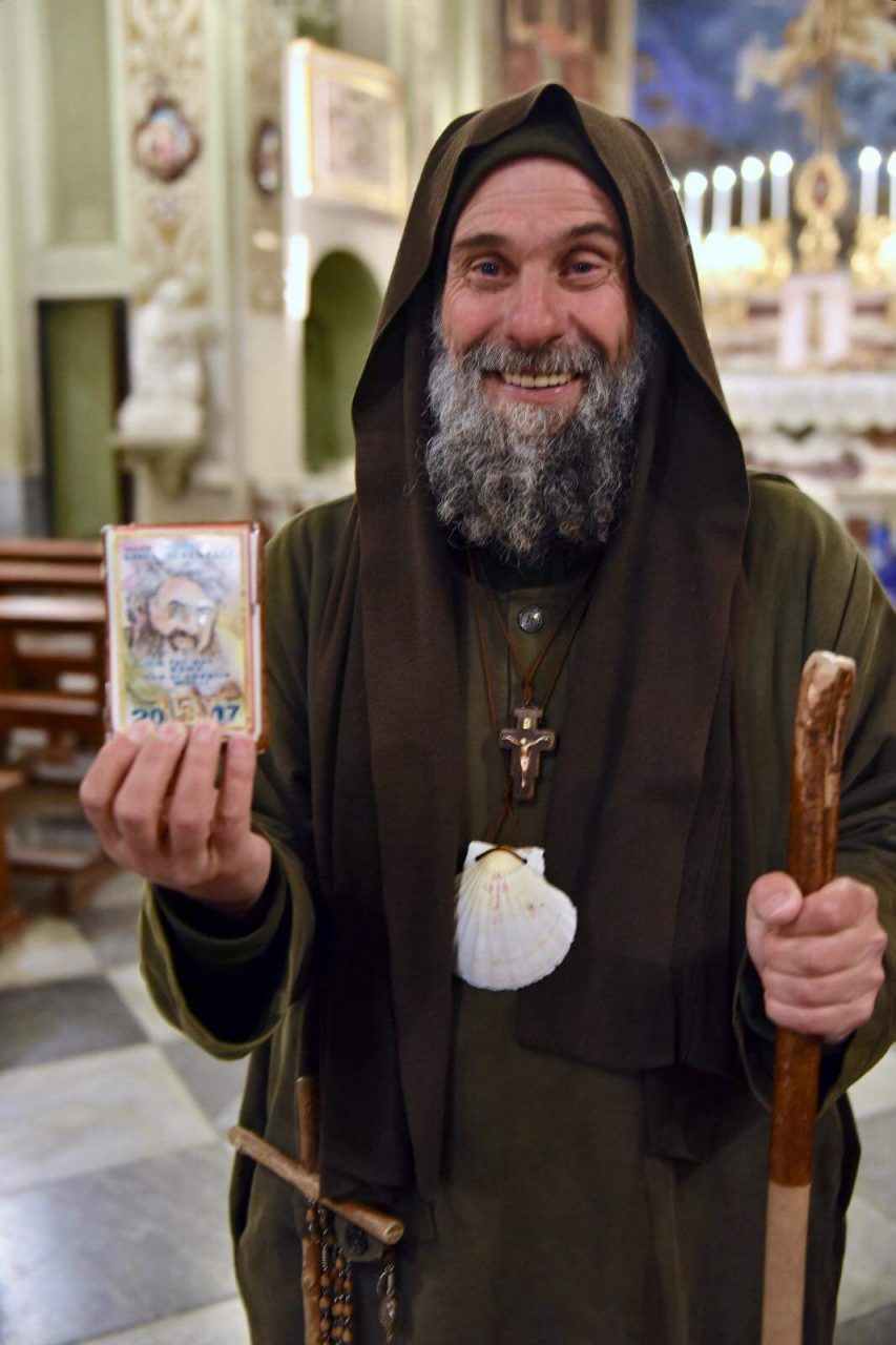 Il celebre pellegrino ha ricevuto ieri la benedizione del Vescovo Antonio Suetta, a Sanremo, questa sera sarà a Bordighera. Domani è previsto l’arrivo a Ventimiglia, e poi via, lungo i sentieri del Cammino fino a Santiago