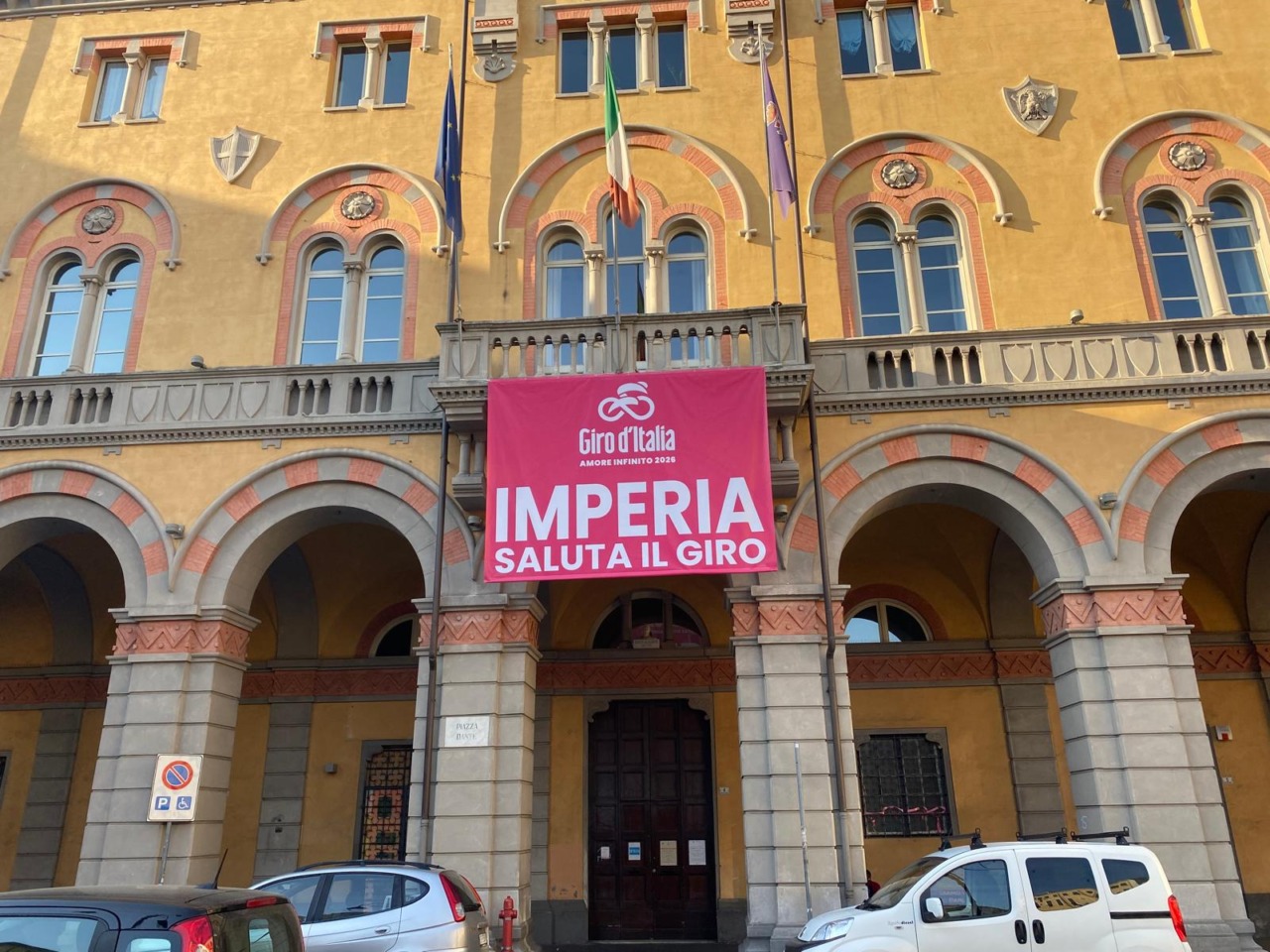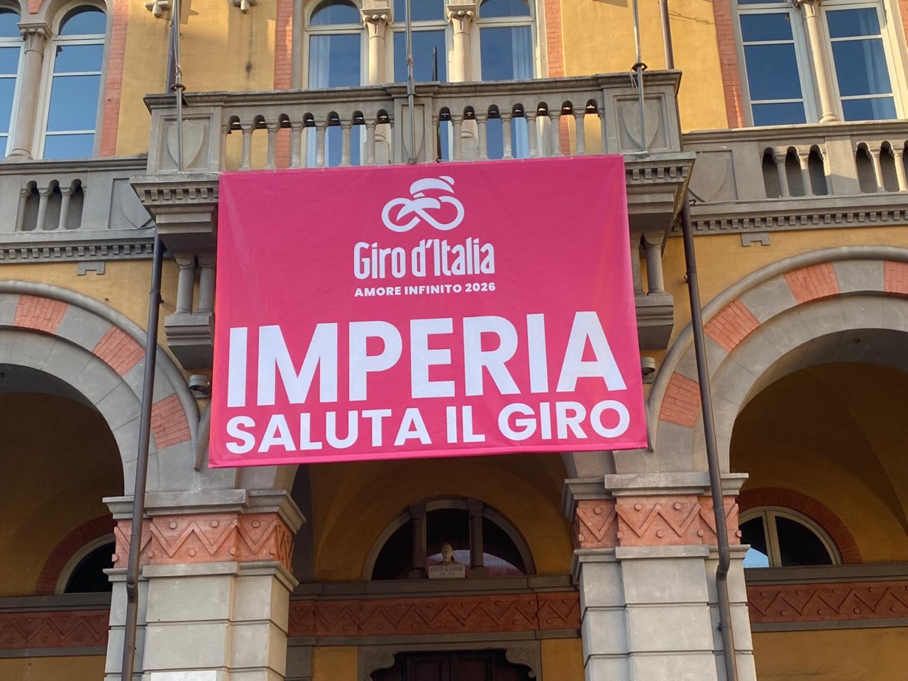 Primi striscioni celebrativi comparsi sul Ponte Impero e in piazza Dante, sulla facciata del “Cremlino”, sede di alcuni uffici comunali. La 12ª tappa del Giro d’Italia 2026 partirà da Imperia il prossimo 21 maggio. La tratta condurrà i ciclisti fino a Novi Ligure per 175 chilometri totali e oltre 2mila metri di dislivello.