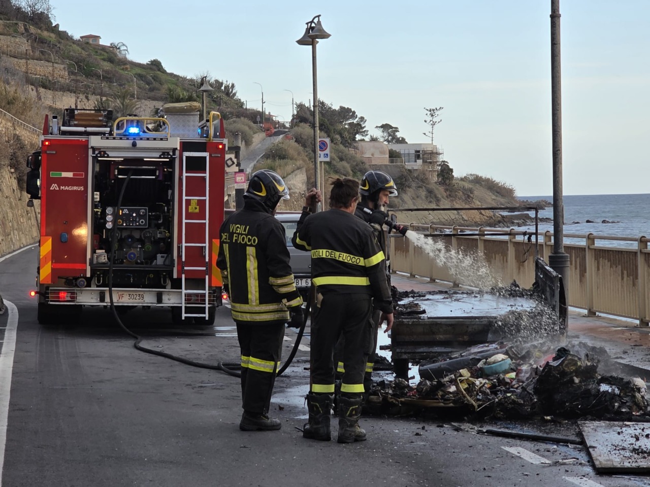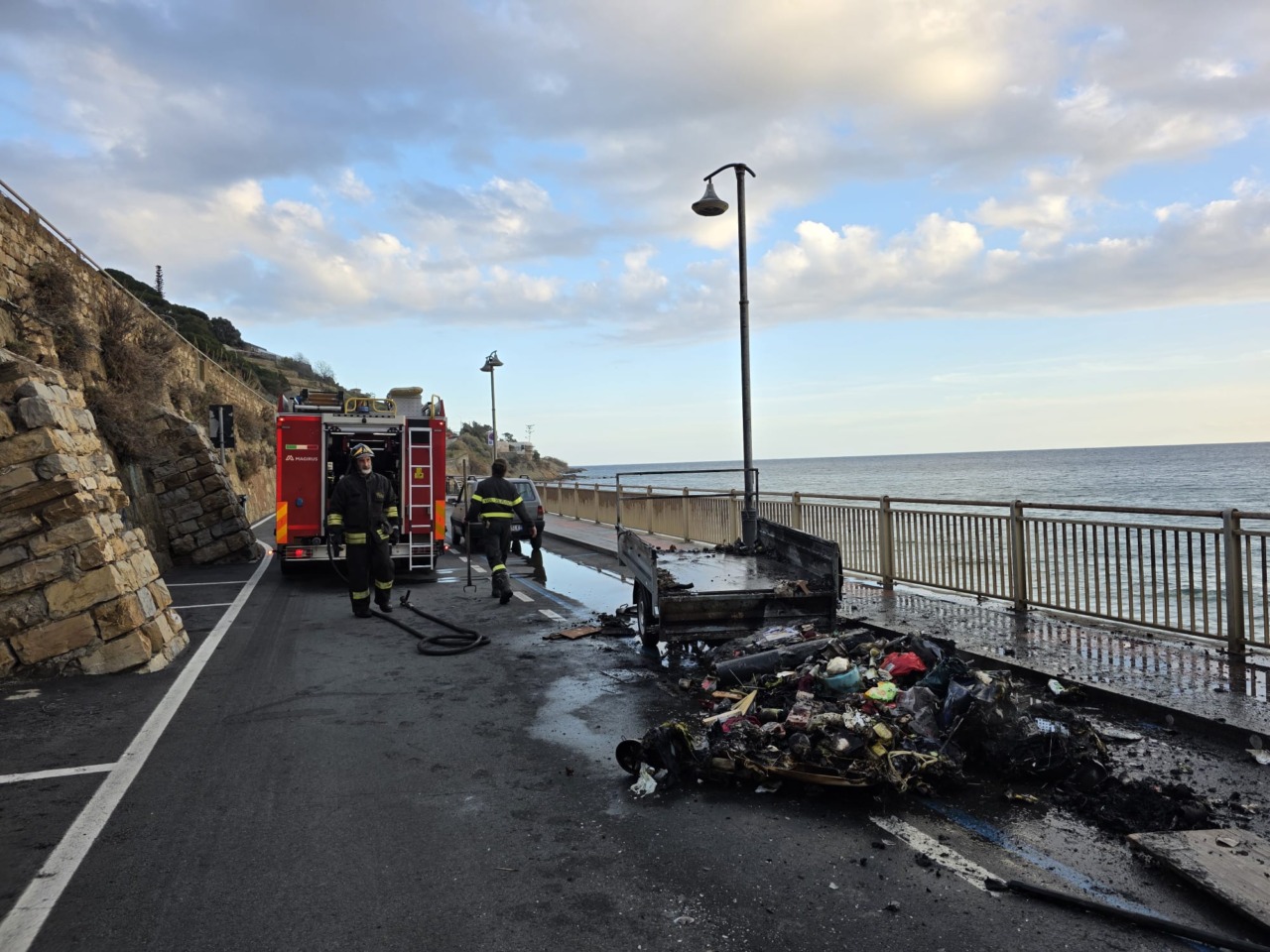 Le fiamme sono divampate per cause ancora da chiarire dal carrello di un mezzo, ricolmo di materiale da cucina. L’incidente occorso nella parte finale del lungomare sanremese. Sul posto i Vigili del Fuoco per domare l’incendio e la Polizia di Stato per i rilievi del caso.