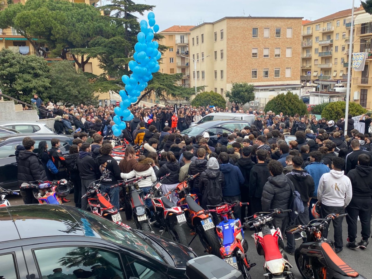 Le esequie celebrate nella Chiesa di Cristo Re da don Giampiero Serrati. Il corteo funebre scortato dagli amici del giovane, in moto. Era presente anche il dirigente scolastico Luca Ronco. Tanta la commozione. Esposto anche lo striscione con scritto “Capone Vive“. Nei giorni scorsi i compagni di classe gli avevano dedicato una toccante lettera di addio. «Quel banco – scrivevano – sarà per sempre il tuo».