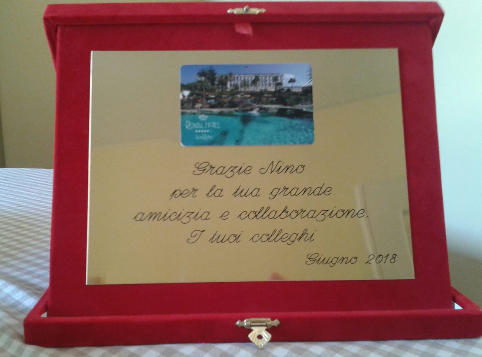 Nino Macrì ha lavorato come operaio ausiliario per 22 anni all’Hotel Royal di Sanremo. I colleghi l’hanno salutato con una targa speciale e con un’affettuosa dedica.