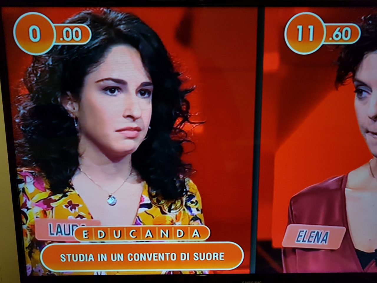 Nella sfida con Elena per poter rimanere nel programma, la bella sanremese è “cascata” sulla domanda “Studia in un convento di suore”, purtroppo la risposta educanda è arrivata troppo tardi, quando il tempo era già scaduto.