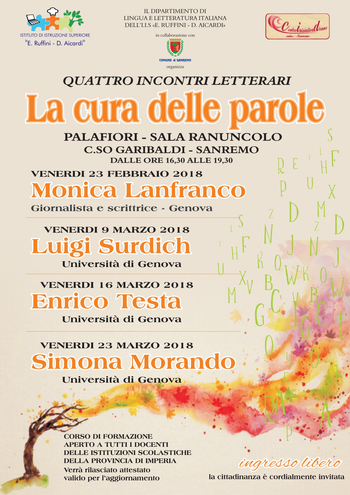 Presenta Daniela Cassini del Centro Iniziativa Donne di Sanremo. L’ingresso è libero e gratuito.