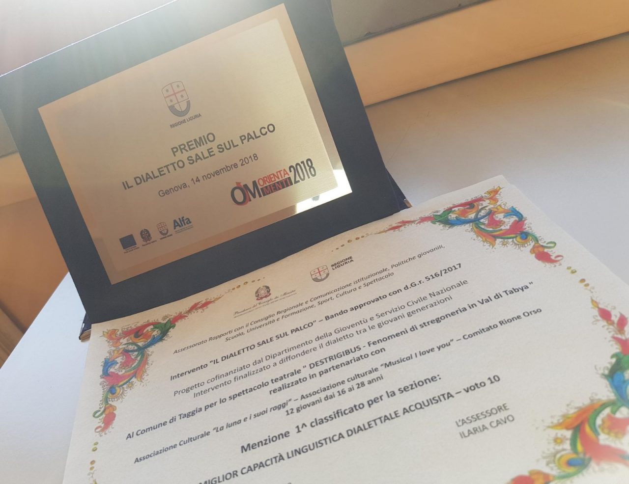 Il progetto teatrale “De strigibus fenomeni di stregoneria in Val di Tabya”dell’Associazione La Luna e i suoi Raggi, in collaborazione con il Comune di Taggia, ha vinto il primo premio del concorso regionale