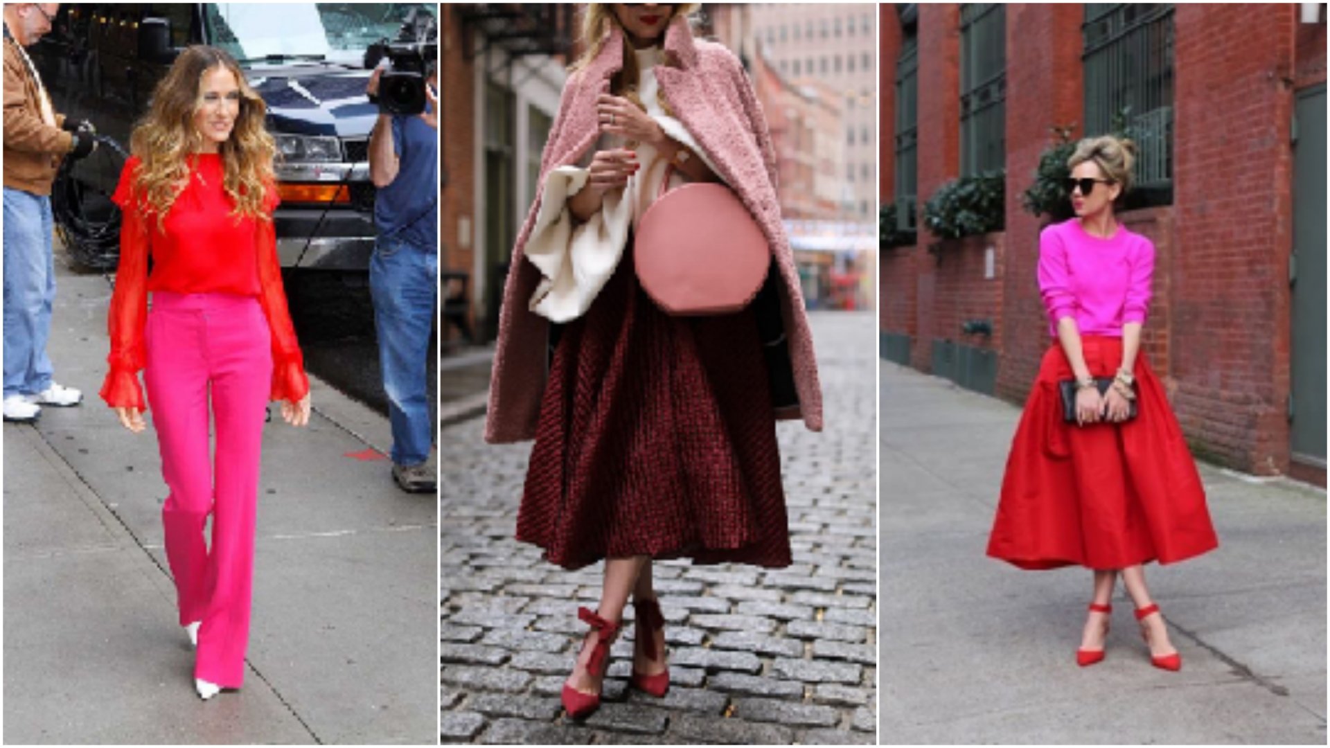 Abbina la tua personalissima sfumatura di rosso al rosa per un look super chic. Ricorda la saturazione del rosso va di pari passo con quella del rosa per un outfit più strong, se invece prediligi outfit più soft, abbina al rosso, un pink-nude.