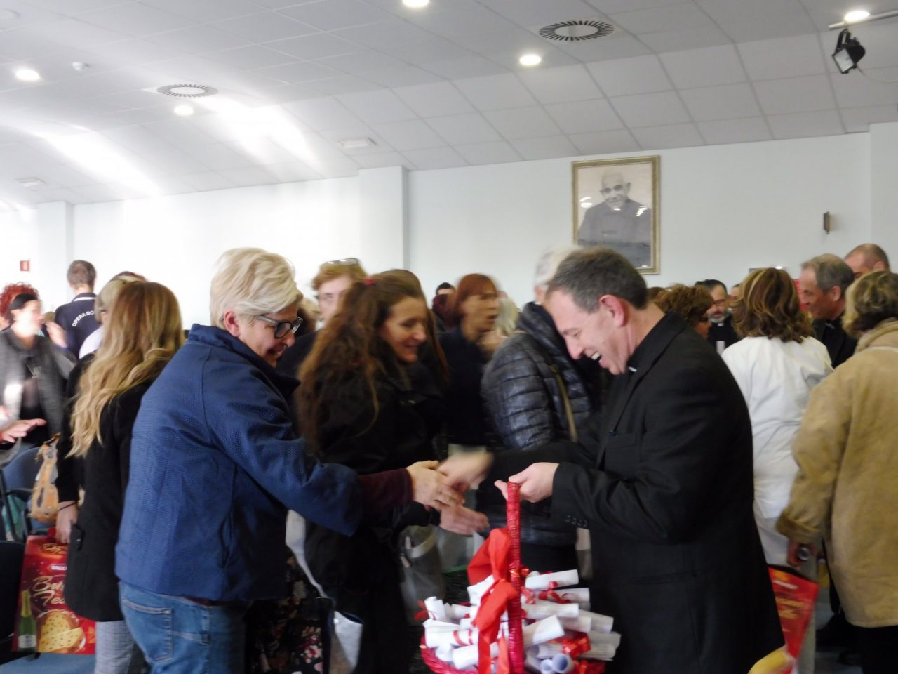 Monsignor Suetta ha fatto visita all’Opera Don Orione, dedicandosi alla catechesi del personale. Con l’occasione, insieme al direttore don Gianni Castignoli, ha fatto gli auguri di buone feste a tutti i presenti, consegnando di persona la pergamena contenente il contenuto del suo intervento.