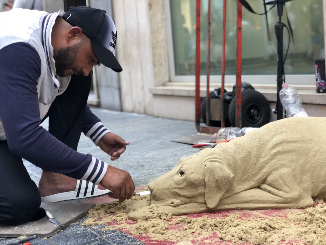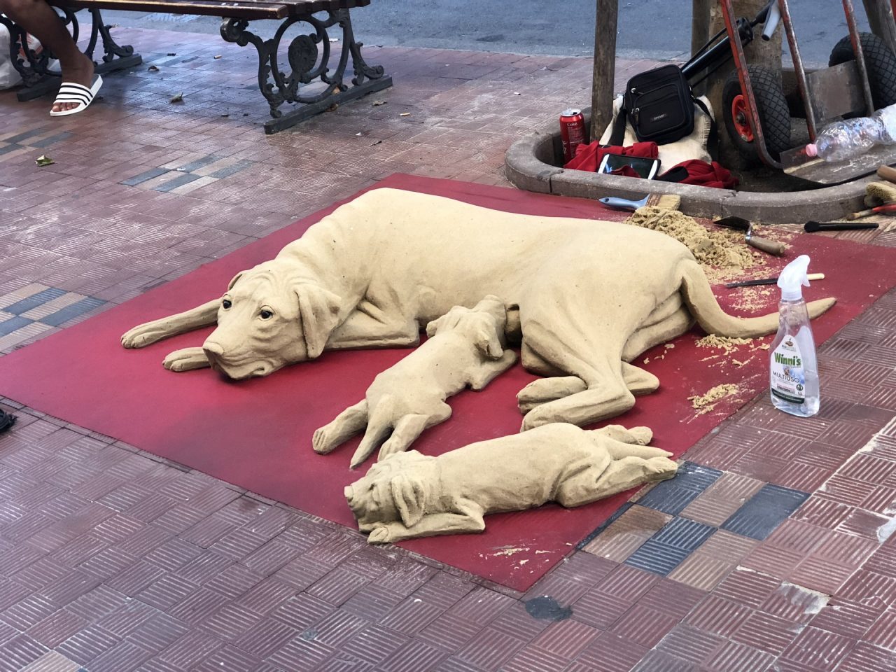 Tra Ventimiglia e Sanremo sta incantando i passanti con le sue sculture di sabbia, alle volte fin troppo realistiche. Nella Città dei Fiori, infatti, sono state parecchie le segnalazioni fatte ai Vigili: “quel cane sta male, fate qualcosa!” (LEGGI QUI). Di primo impatto, la verosimiglianza del cane, sdraiato con i suoi piccolini, è davvero notevole.