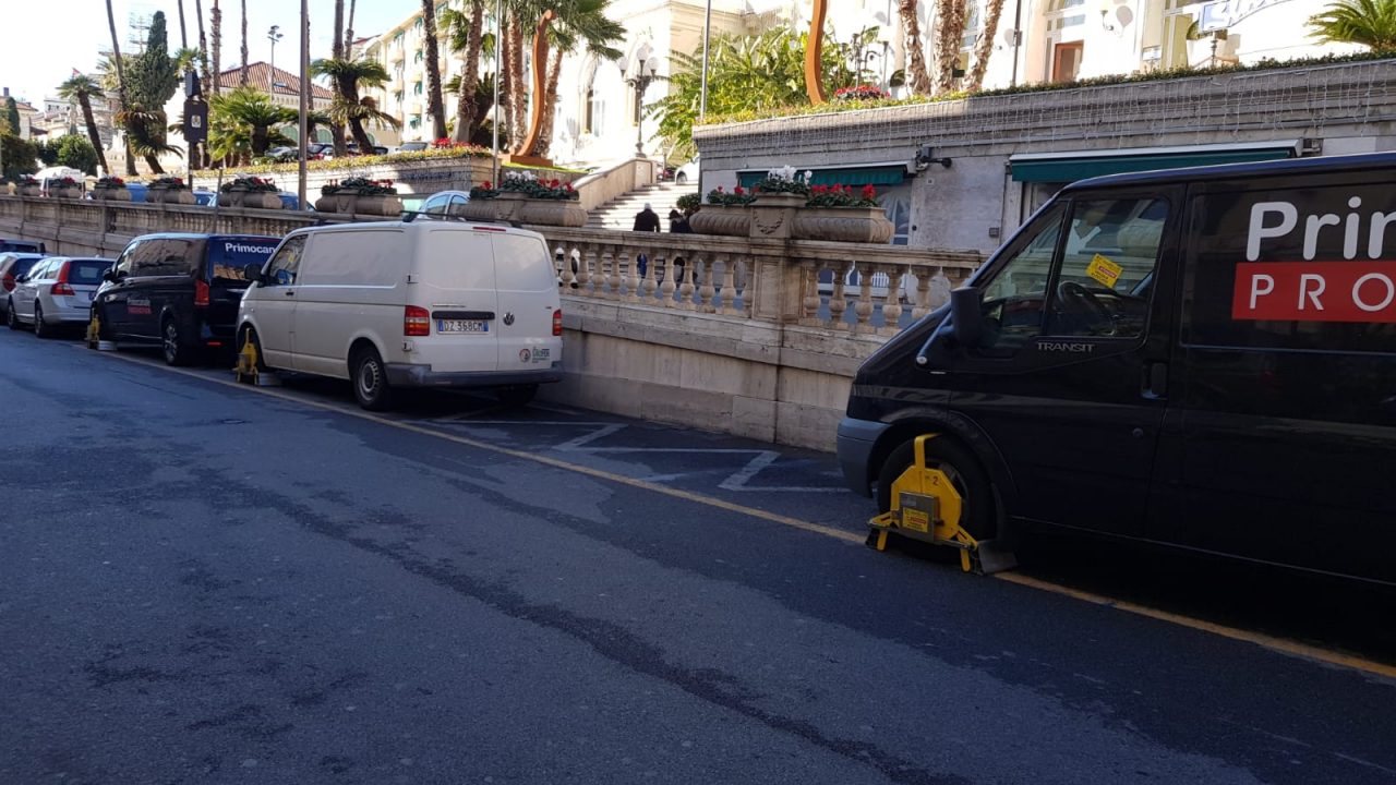 Non hanno avuto pietà questa mattina gli agenti della Polizia Municipale di Sanremo che hanno bloccato i mezzi di Primocanale, l’emittente televisiva genovese. I furgoni parcheggiati lungo Corso Imperatrice, proprio sotto al Casinò sono stati tutti bloccati con le ganasce, oltre alla ovvia sanzione.