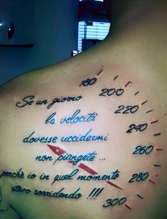 Suona quasi come una tragica profezia con quella frase tatuata nel semicerchio di un un tachimetro analogico, la cui lancerà segna 290 chilometri all’ora. Non ci sarebbe nulla di strano, se non fosse che la foto del tatuaggio era stata postata l’11 giugno scorso da Domenico Mimmo Cutrupi, 51 anni, morto ieri sera in una tragico incidente in scooter avvenuto in corso Genova, a Ventimiglia.