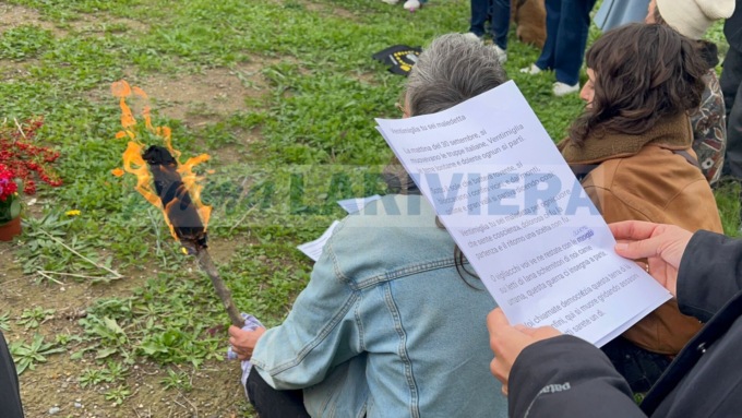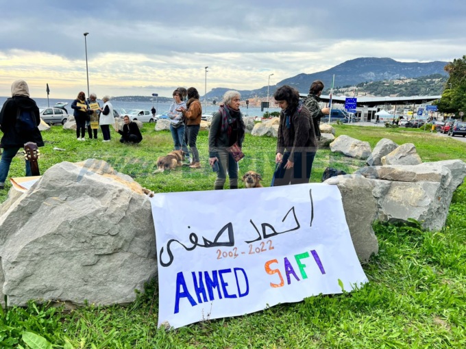 I manifestanti hanno posato mazzi di fiori e lumini, accanto all’opera “Terzo Paradiso” del Pistoletto; quindi si sono messi in cerchio ed hanno letto un saluto ad Ahmed in italiano, francese e inglese. Quindi hanno intonato una canzone intitolata “Ventimiglia tu sei maledetta”.