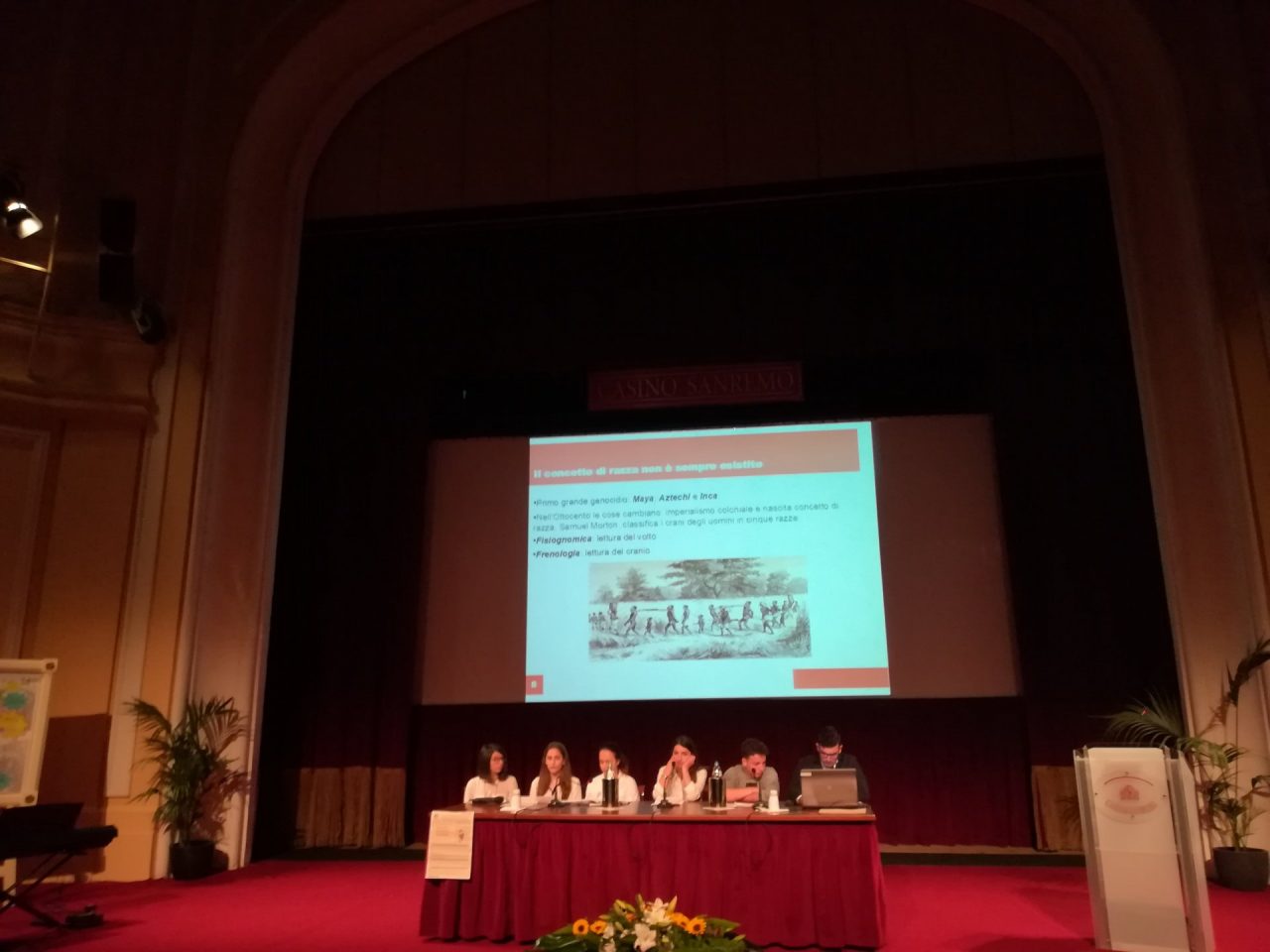 Al Teatro del Casino Municipale di Sanremo si è svolto il convegno “Memoria, identità e razzismo” rivolto a una platea di alcune centinaia di ragazzi delle scuole medie cittadine, accompagnati dai loro insegnanti.