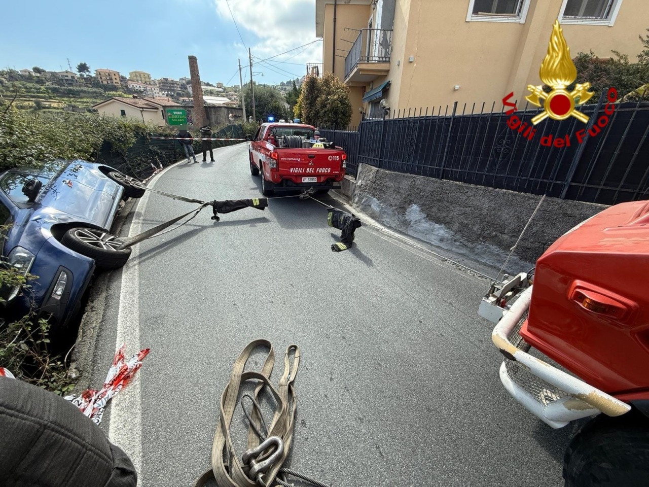 I vigili del fuoco sono dovuti intervenire, nel pomeriggio, in strada Solaro Rapalin a Sanremo, per recuperare una vettura che era uscita di strada.