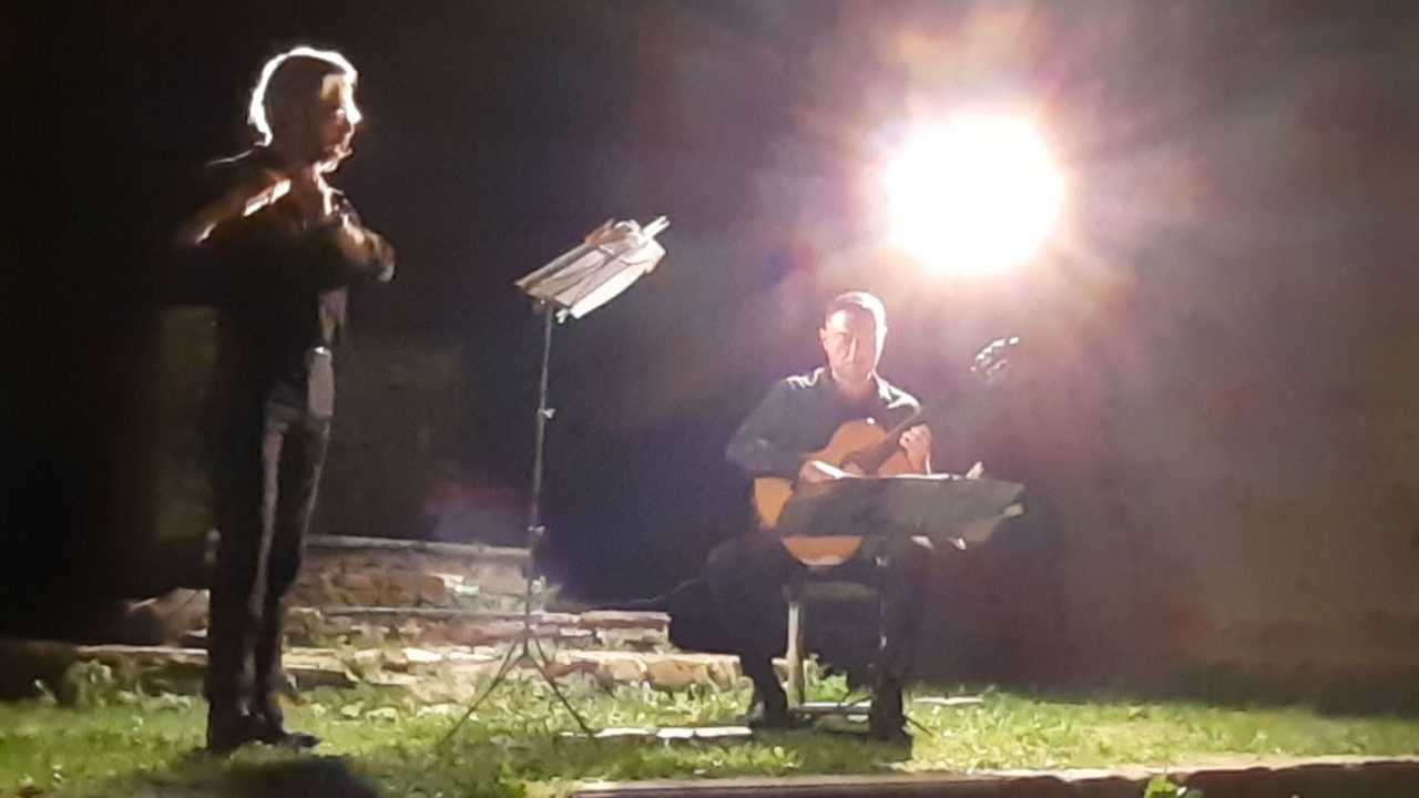 Le vecchie rovine dell’antica chiesa di San Nicolò a Bajardo, testimoni inamovibili del tempo che fu e che sarà, sono state la cornice perfetta per il concerto di Roberto Orengo al flauto e Diego Campagna, chitarra ;