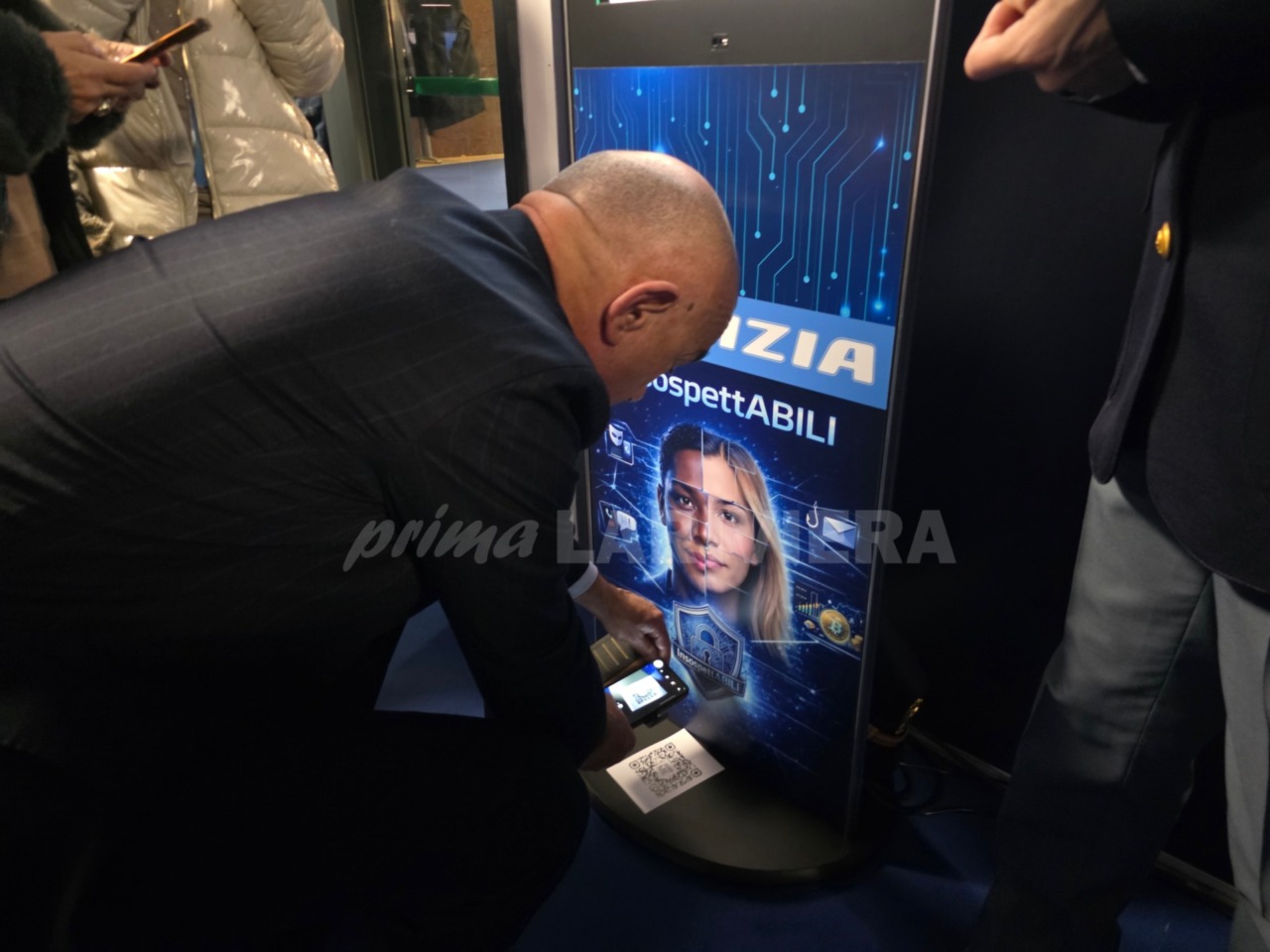 dopo l’inaugurazione, è stato il sindaco di Sanremo, Alessandro Mager. “Abbiamo presentato una campagna di sensibilizzazione e prevenzione alle truffe online con totem multimediali e simulazioni interattive di scenari reali di truffe – ha detto Carmeli -. Accompagnano l’utente nel riconoscere i maggiori errori comportamentali che lo espongono al rischio truffe, come: phishing, smishing e vishing, in cui arriverà una mail o un sms da parte di un istituto di credito simulato sul telefono della persona, che solleciterà, con una certa urgenza, una determinata operazione in cui l’utente sarà indotto a fornire i propri codici di accesso all’home banking”.
