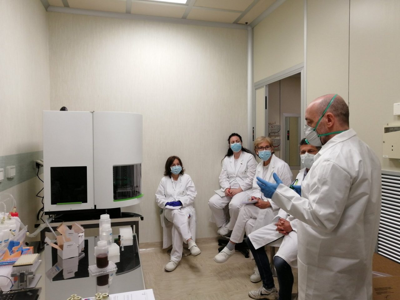 Stamattina fase di training sull’uso dello strumento arrivato ieri, che permette di isolare le particelle del virus che potrebbero essere presenti nei tamponi. A dedicarsi al training ai nostri dei laboratori due delegati dell’azienda fornitrice. I ragazzi dell’Associazione Matteo Farinelli, dedicata alla memoria del loro amico Matteo prematuramente scomparso nel 2011 a causa di un neuroblastoma, sono tornati al Pronto Soccorso del San Martino per donare altri 50 pasti a medici e infermieri impegnati nell’emergenza Covid-19
