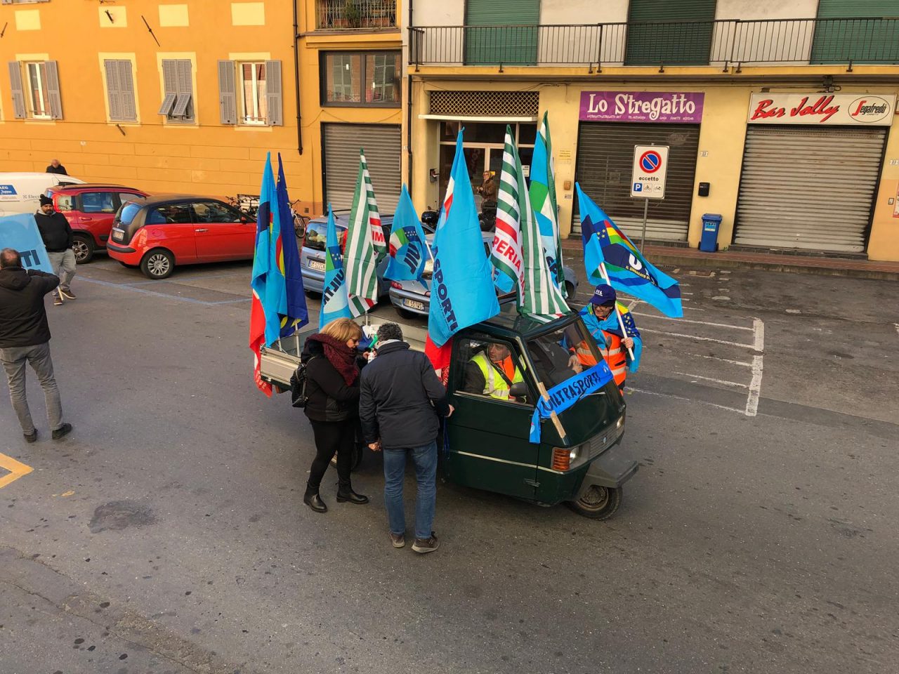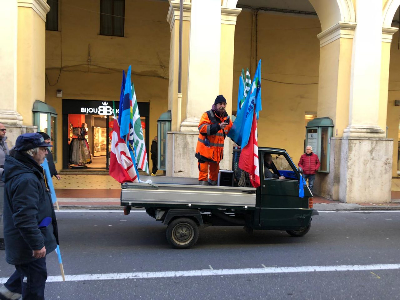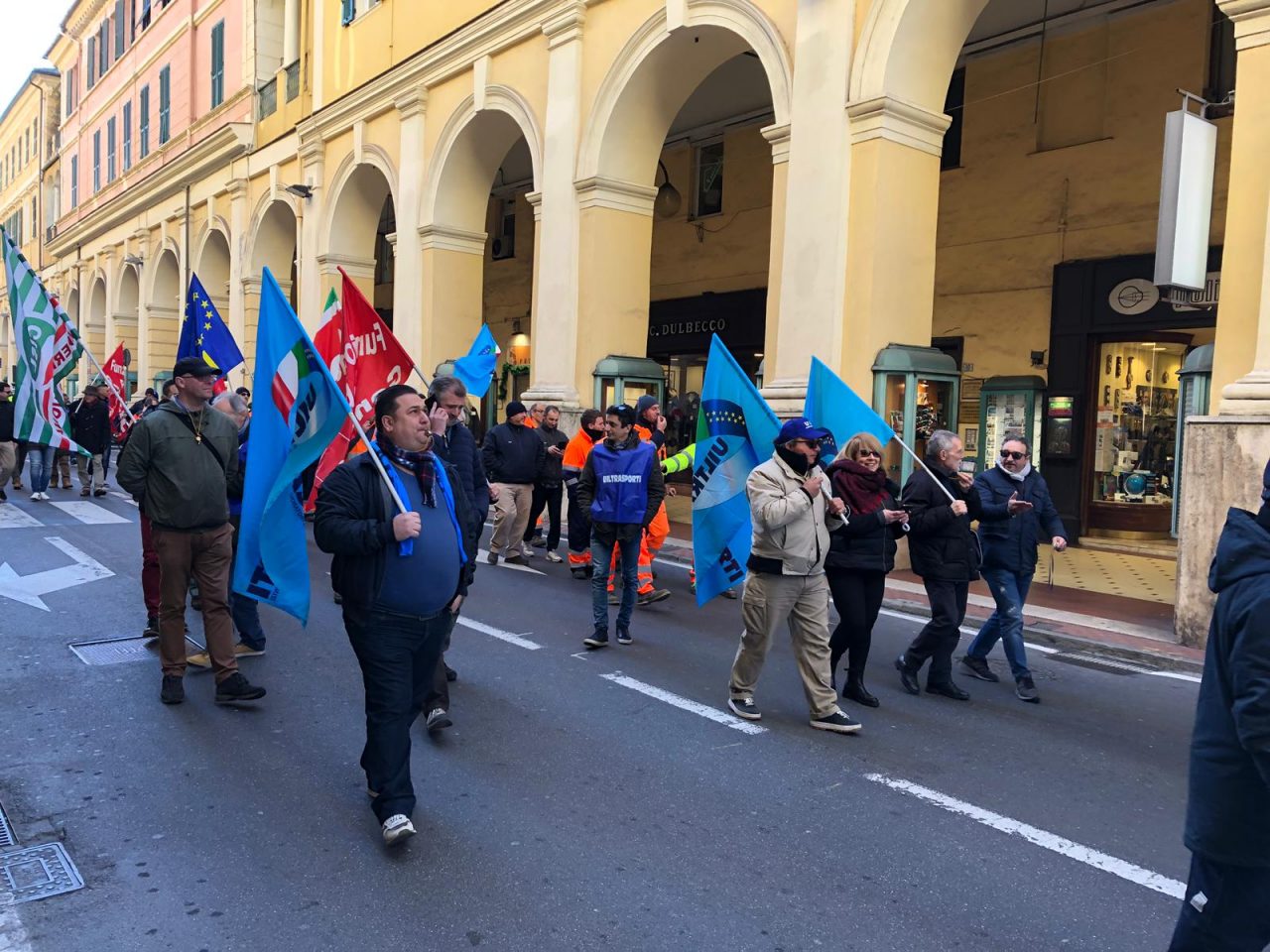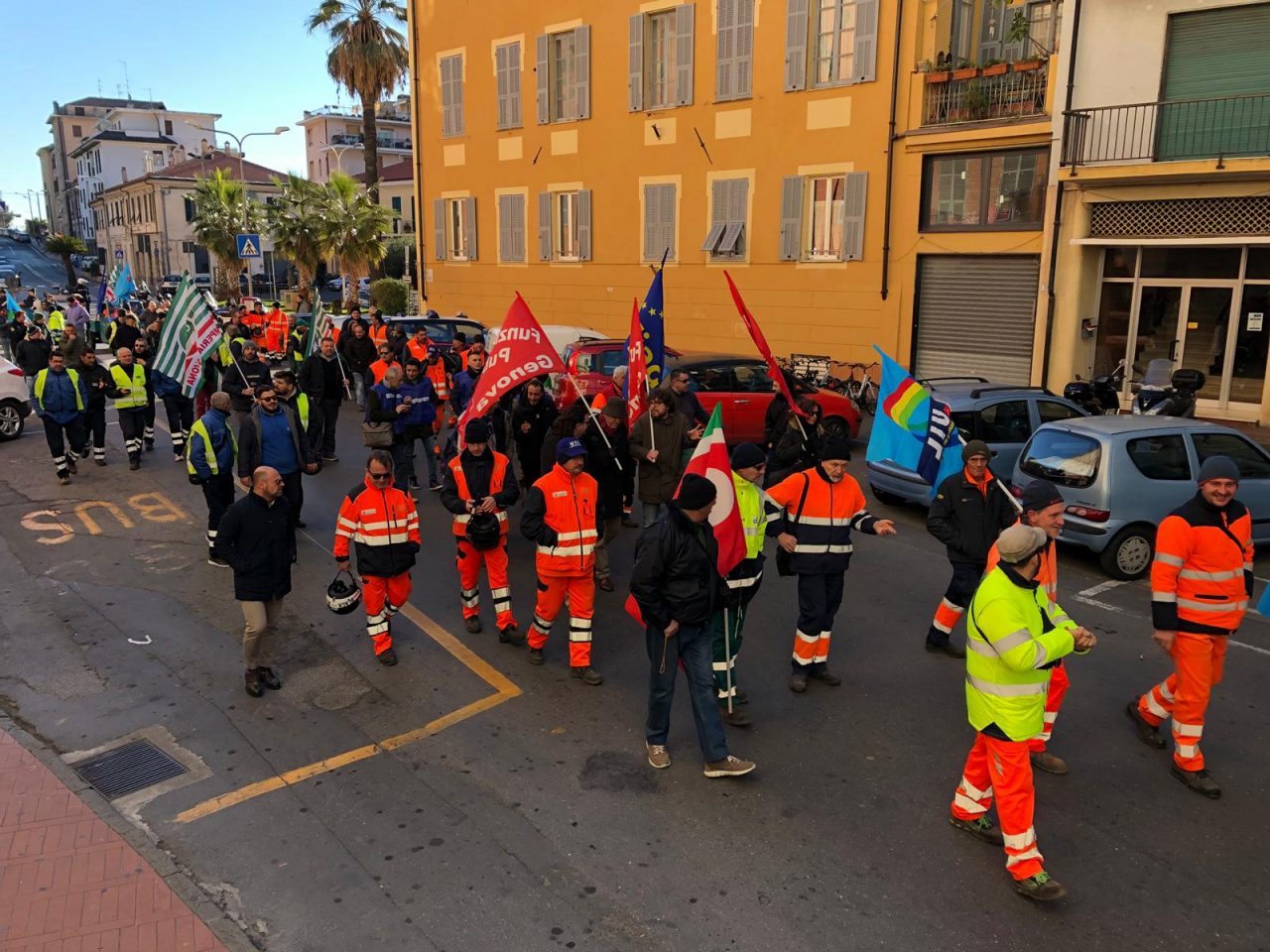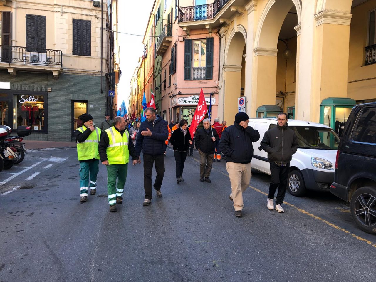 Decine di lavoratori dell’igiene urbana sono scesi in piazza, stamani, a Imperia, con partenza da piazza Calvi, nell’ambito della vertenza contro la decisione della Cooperativa Proteo – appaltatrice del servizio nei sedici Comuni delle Valli Arroscia e Impero, sopra Imperia – di applicare il contratto delle cooperative, anziché il contratto nazionale del ciclo integrale dei rifiuti (Fise) ai cinque lavoratori della gestione per i quali è previsto il passaggio.