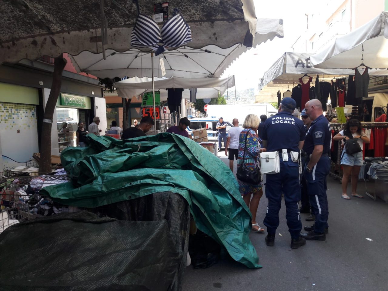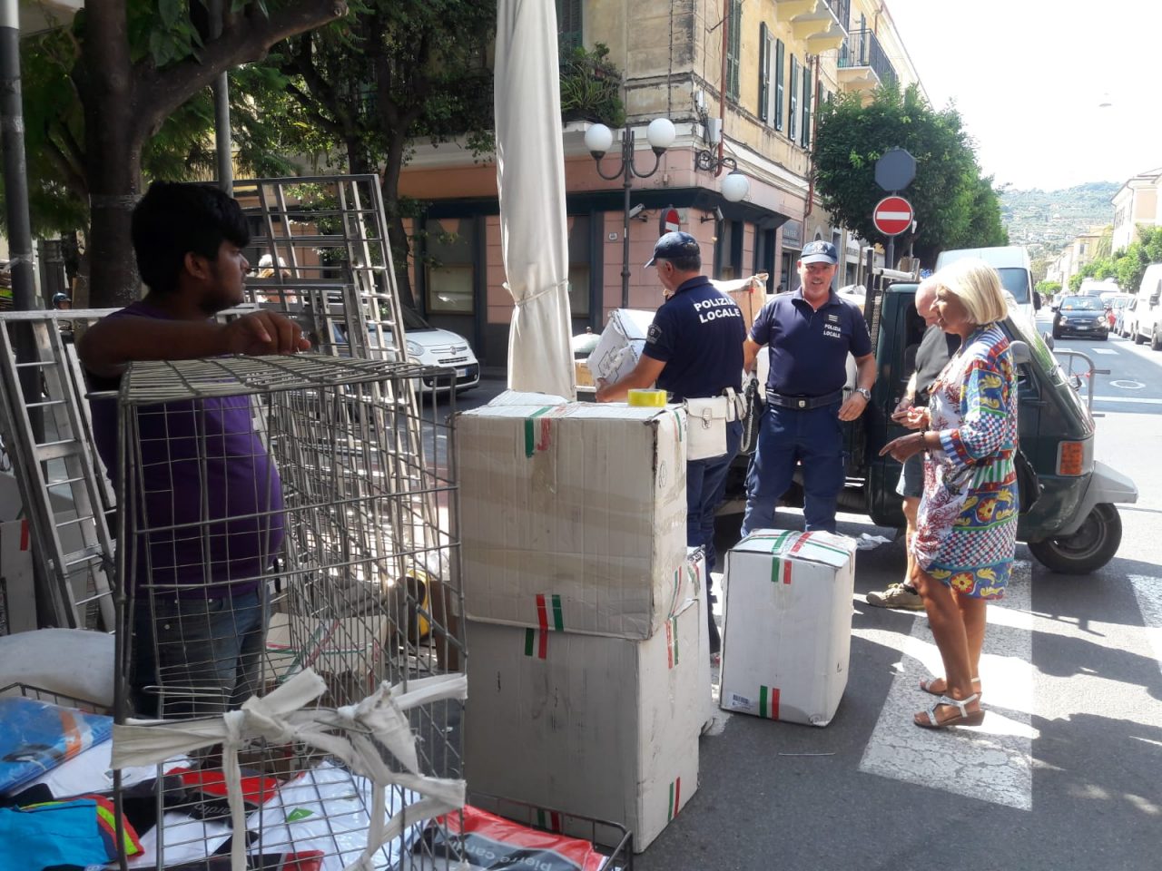 Uno stock di circa sedicimila articoli, soprattutto biancheria intima maschile e femminile e costumi da bagno, per un valore commerciale di circa quarantamila euro, è stato sequestrato dalla polizia municipale di Diano Marina a tre bengalesi, regolari e residenti a Sanremo, che ieri avevano montato i banchi al mercato cittadino, sprovvisti delle autorizzazioni. Gli agenti hanno poi scoperto, che i titolari delle licenze si trovavano a una fiera di Forte dei Marmi e che per stare – come si dice – “col piede in due scarpe”, avevano chiesto ad alcuni loro conoscenti di sostituirli al mercato.