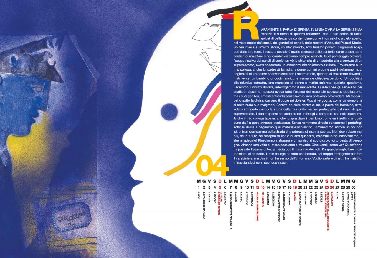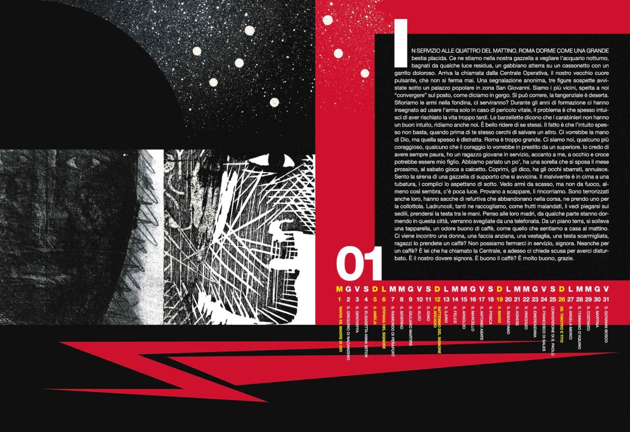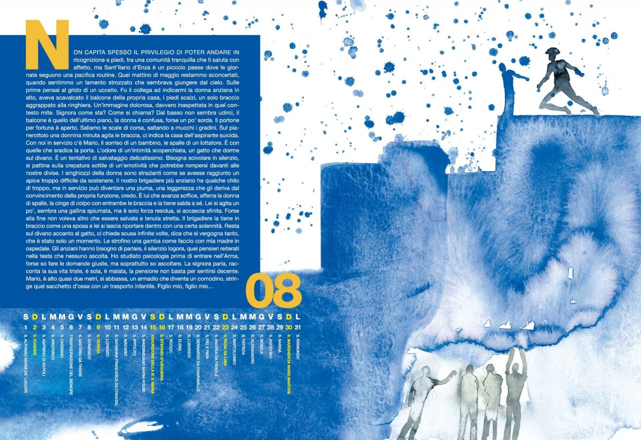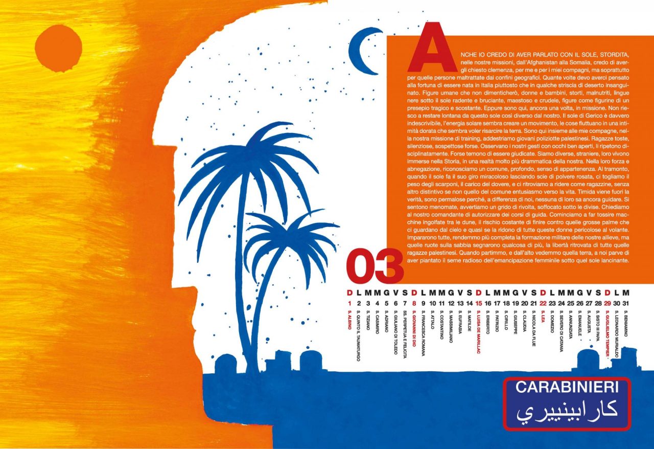 regolarmente nel 1950 e da allora è stata puntuale interprete, con le sue tavole, della vicinanza dell’Arma ai cittadini e, attraverso di essa, all’Italia. Quello del 2020 è un calendario “narrativo”, da leggere. Racconta del quotidiano eroismo dei carabinieri, attraverso le tavole realizzate dall’artista Mimmo Paladino, tra i massimi autori contemporanei, celebre esponente della transavanguardia, che ha visto le proprie opere esposte permanentemente in alcuni dei principali musei internazionali, tra cui il Metropolitan Museum di New York, accompagnate da toccanti testi scritti da Margaret Mazzantini, scrittrice di fama mondiale, vincitrice di numerosi premi tra cui lo Strega e il Campiello, che con la sua prosa incisiva ha trasformato vicende reali in toccanti narrazioni.