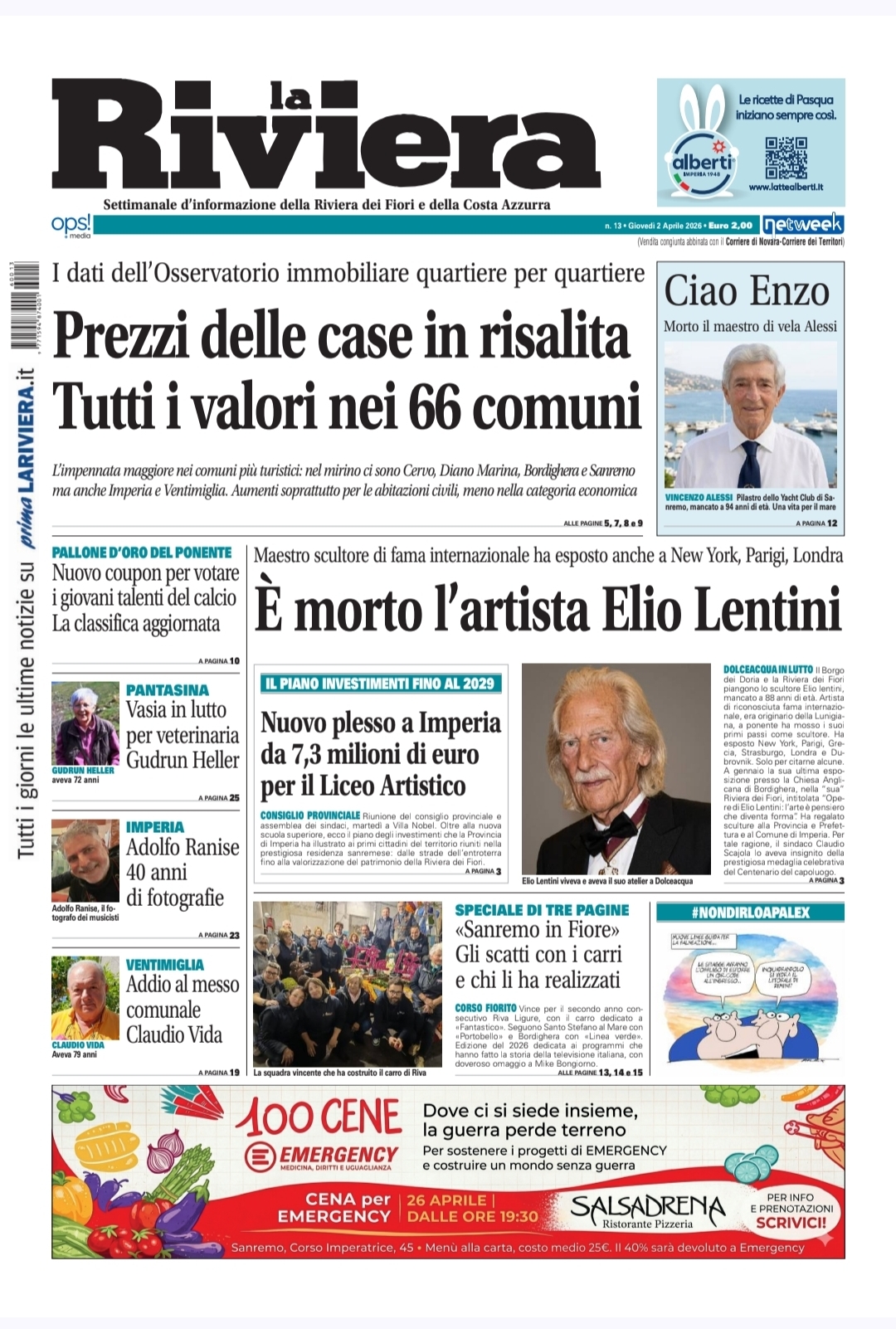 Il nuovo numero de La Riviera è in edicola come ogni giovedì da 35 anni con interviste, approfondimenti e notizie esclusive dalla provincia di Imperia. Eccone alcune