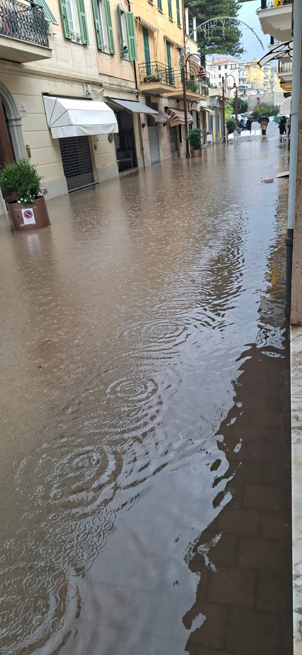 Ma anche da Bordighera arrivano delle immagini significative. Acqua alta diversi centimetri per le vie del centro della Città delle Palme. Nei social della città circola un “reel” che immortala Corso Italia trasformato, praticamente,  in un fiume.