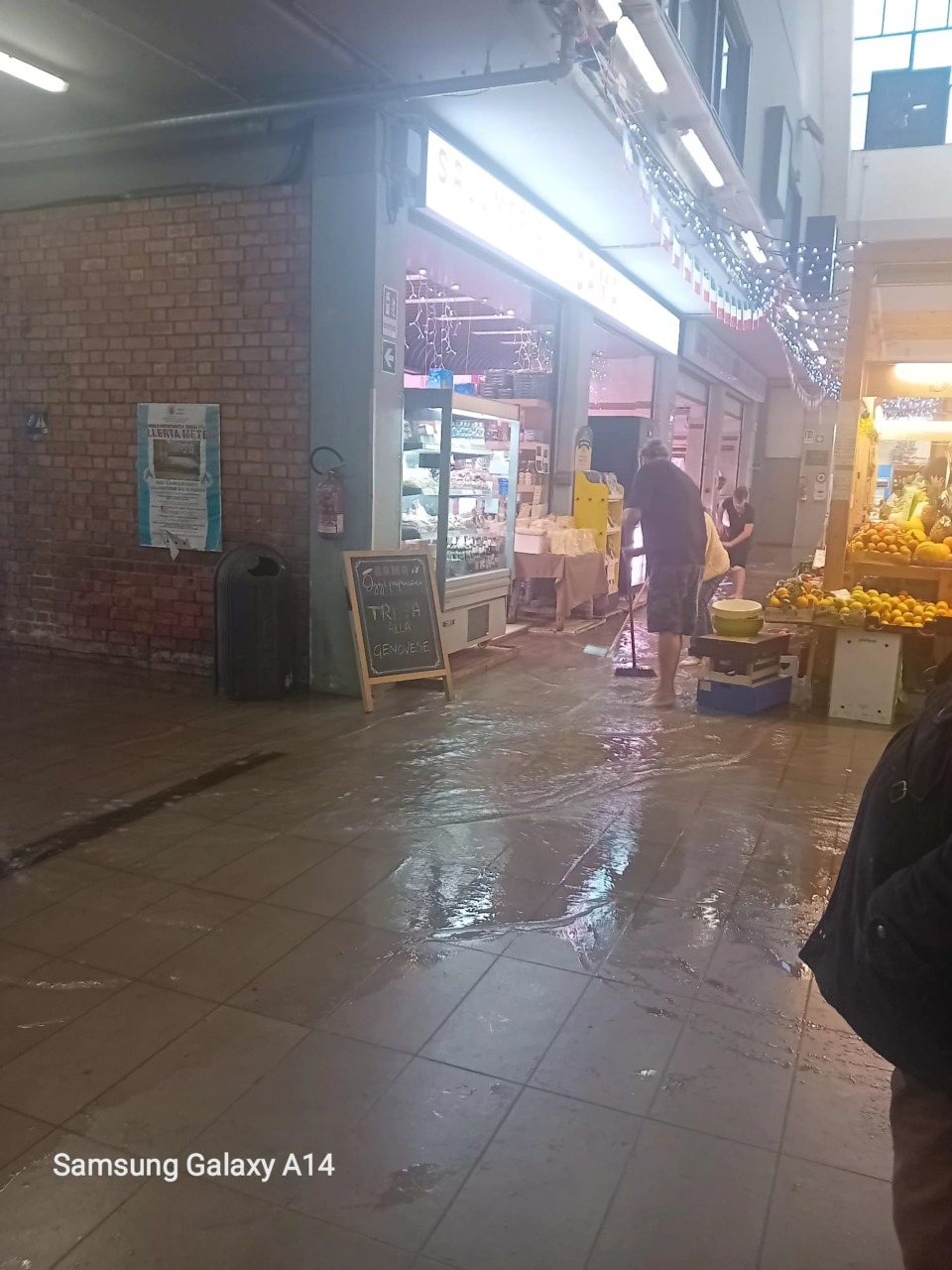 A Sanremo, ad esempio, l’acqua ha invaso il Mercato Annonario di via Martini, causando non pochi disagi agli operatori e ai clienti della struttura sanremese. In corso le operazioni per il ripristino dei corridoi.