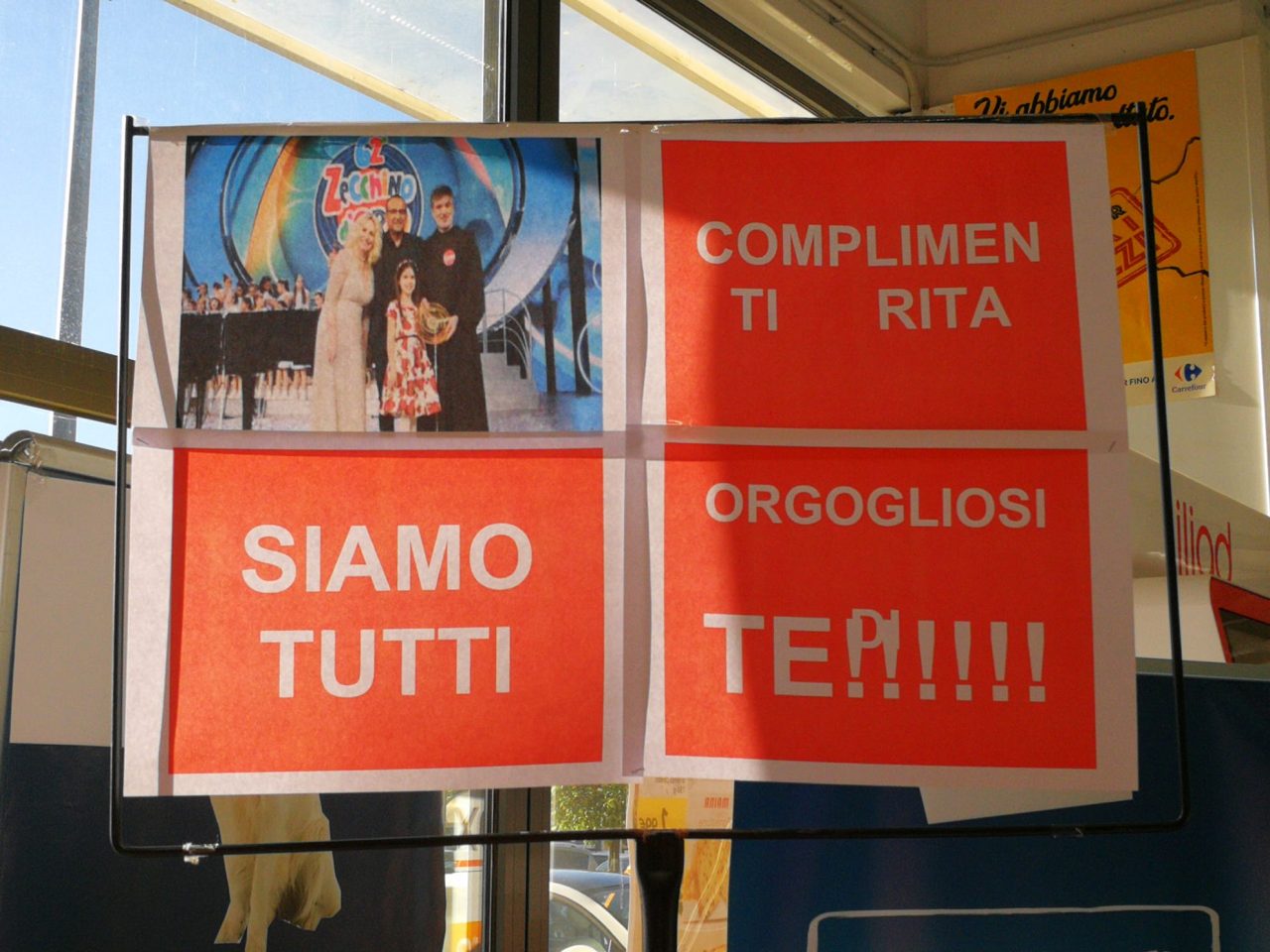 “Anche l’associazione Culturale DoReMusica, in occasione della prima esibizione di Rita postZecchino, ha organizzato una festa con tanto di torta, e anche a loro vanno i nostri più sinceri ringraziamenti. Il paese di Bussana, insieme al sindaco Alberto Biancheri, al vicesindaco Alessandro Sindoni e don Alfredo hanno organizzato una grande festa a sorpresa, con tanto di striscioni, regali, fiori e biscotti a forma di H fatti dalle Mamme, che con le loro iniziative tengono vivo il paese”.