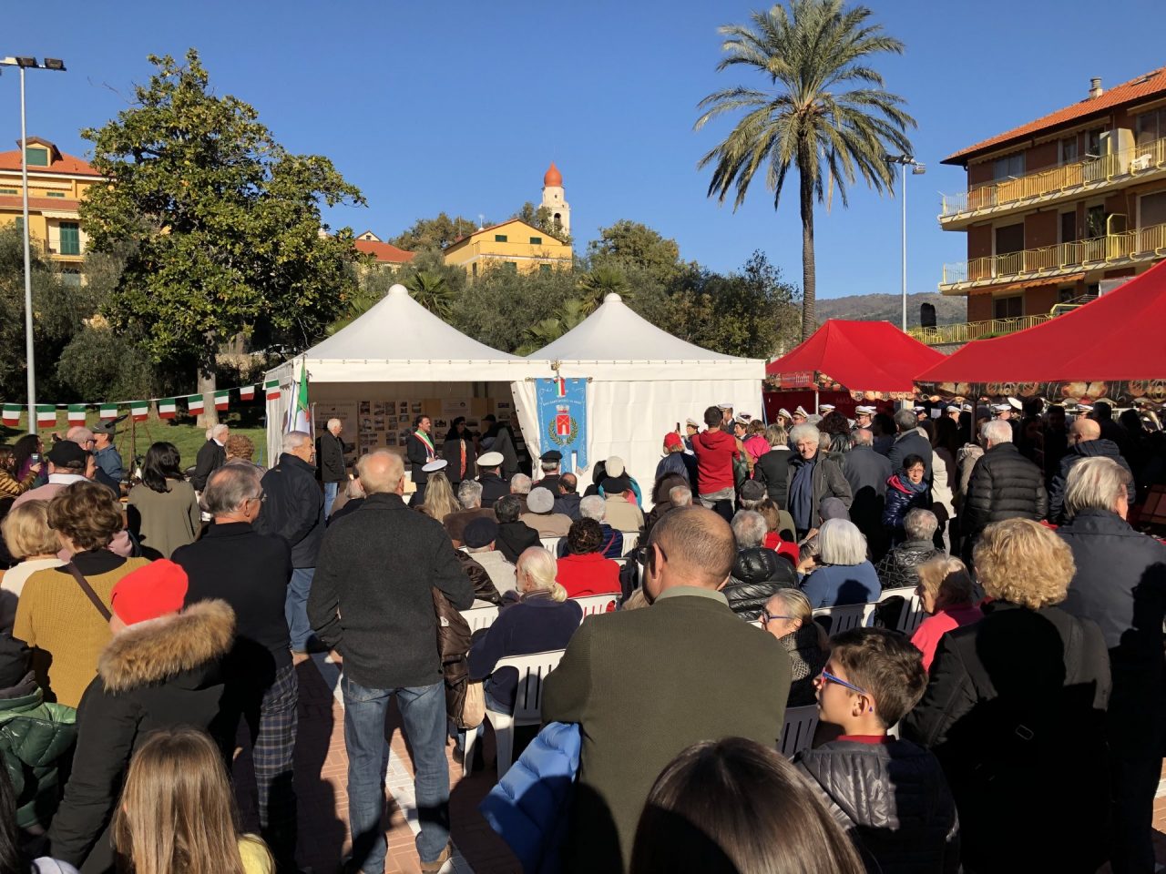 San Bartolomeo al Mare ha celebrato oggi il Cinquantenario del cambio di nome che ha dato la spinta definitiva all’affermazione turistica della cittadina, fino ad allora chiamata San Bartolomeo del Cervo. Lo ha fatto con una semplice ma suggestiva cerimonia, con la partecipazione della Banda musicale di Diano Marina e di numerose Aurotità civili e militari, alla presenza di un pubblico folto, attento, a volte commosso. Durante la cerimonia, l’allora Sindaco Luigi Ardoino ha rievocato i motivi e le modalità con cui si è arrivati al cambio di nome, fino alla firma del Presidente della Repubblica Giuseppe Saragat. Il vice Sindaco Maria Giacinta Neglia e l’Assessore Sandro Fedozzi hanno premiato le aziende Borgarello Abbigliamento e Vivaio Arimondo per la loro continuativa presenza al Mercatino di Natale. Il Sindaco Valerio Urso, oltre ad aver elogiato l’operato delle insegnanti delle scuole elementari, presenti al Mercatino insieme ai lavori proposti dai loro allievi, ha consegnato una pergamena di ringraziamento alla Pasticceria Racca, per il raggiungimento dei 50 anni di attività in San Bartolomeo al Mare.