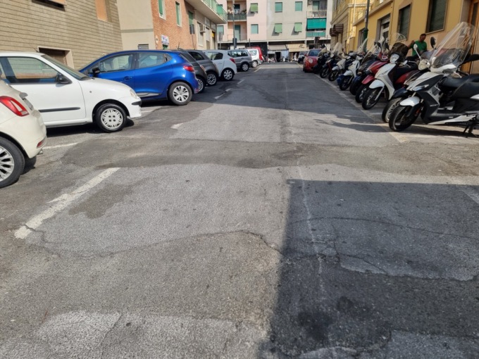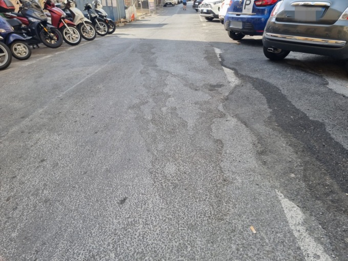 ma ciò che vedete nella foto è quanto appare agli occhi. Il risultato? Il marciapiede non è più utilizzabile e così è stato realizzato un attraversamento pedonale, da condominio a condominio, togliendo altro spazio ai parcheggi. Senza contare la condizione degli asfalti. La gente tra l’altro si chiede se via Vesco, ad esempio, rientra sempre nel piano asfalti del Comune.