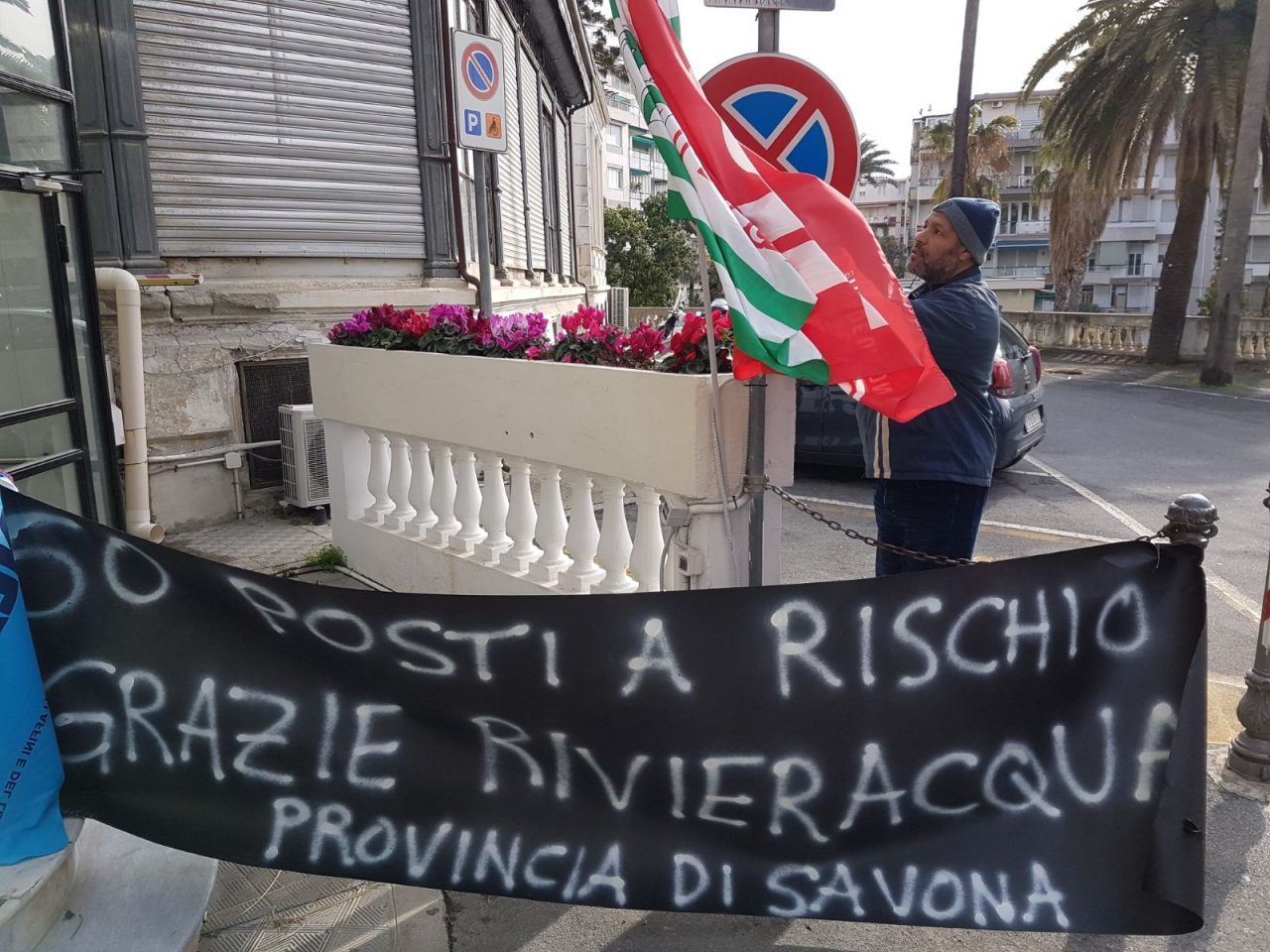 Il sindacato unitario dei lavoratori Cgil, Cisl e Uil ha manifestato, stamani, davanti al Comune di Sanremo, assieme ad alcune decine di edili, contro il mancato pagamento di Rivieracqua (gestore unico del ciclo integrato delle acque in provincia di Imperia), a una ventina di aziende, per un totale di circa tre milioni di euro e il contestuale rischio di licenziamento di duecentocinquanta lavoratori del comparto.