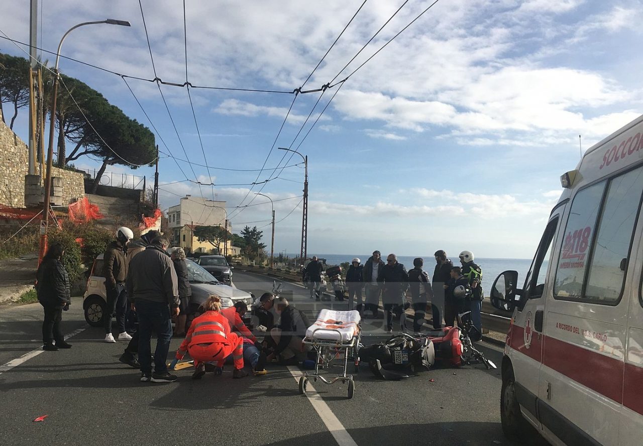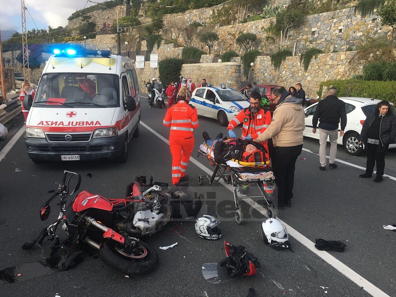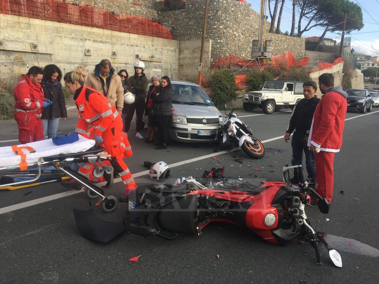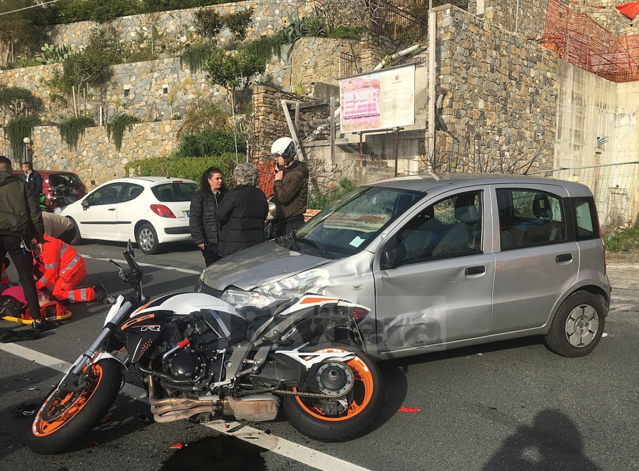 Due motociclisti sono rimasti feriti, sull’Aurelia, all’altezza di corso Mazzini, a Sanremo, per colpa di una donna anziana, uscita da una via laterale, mentre viaggiava a bordo di una Fiat Panda, senza dare la precedenza. L’impatto è stato inevitabile, le moto sono andate distrutte. Sul posto è intervenuto il personale sanitario del 118, con la polizia municipale.