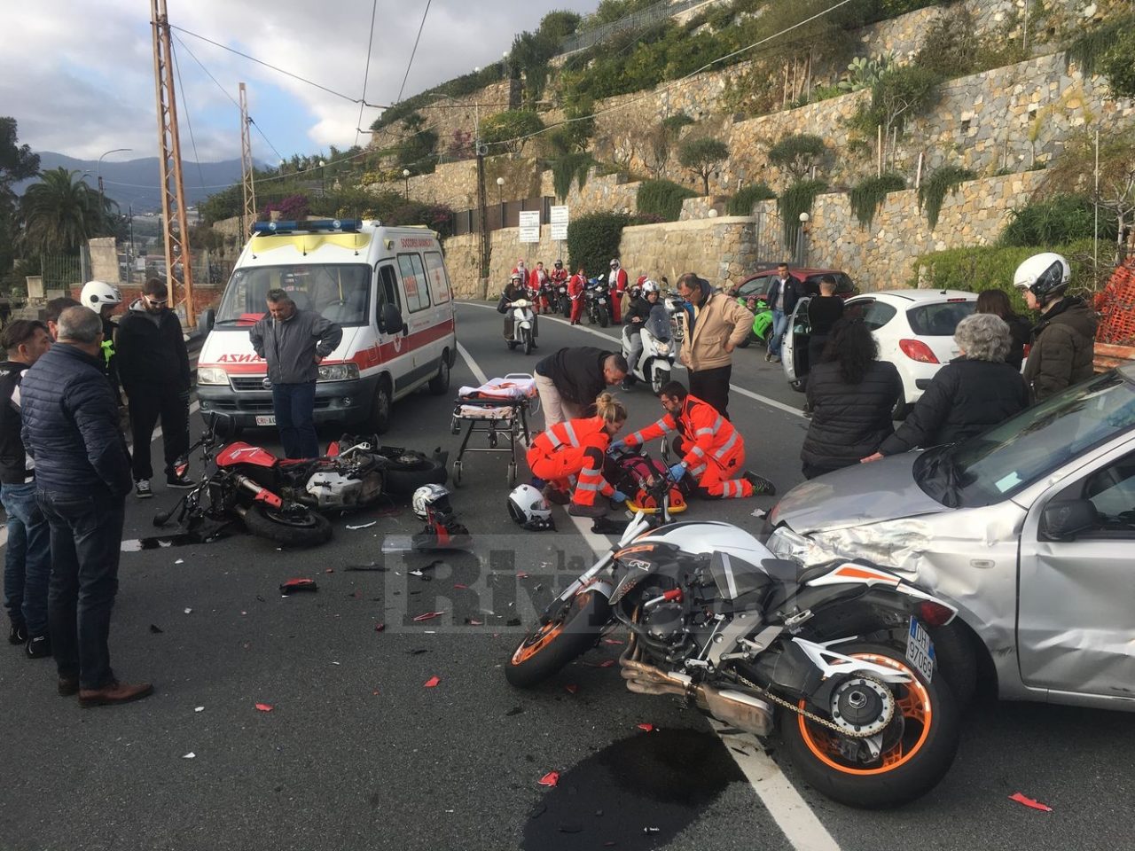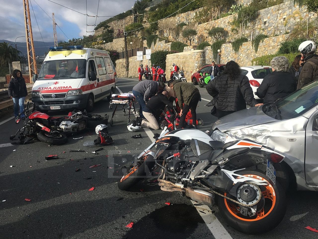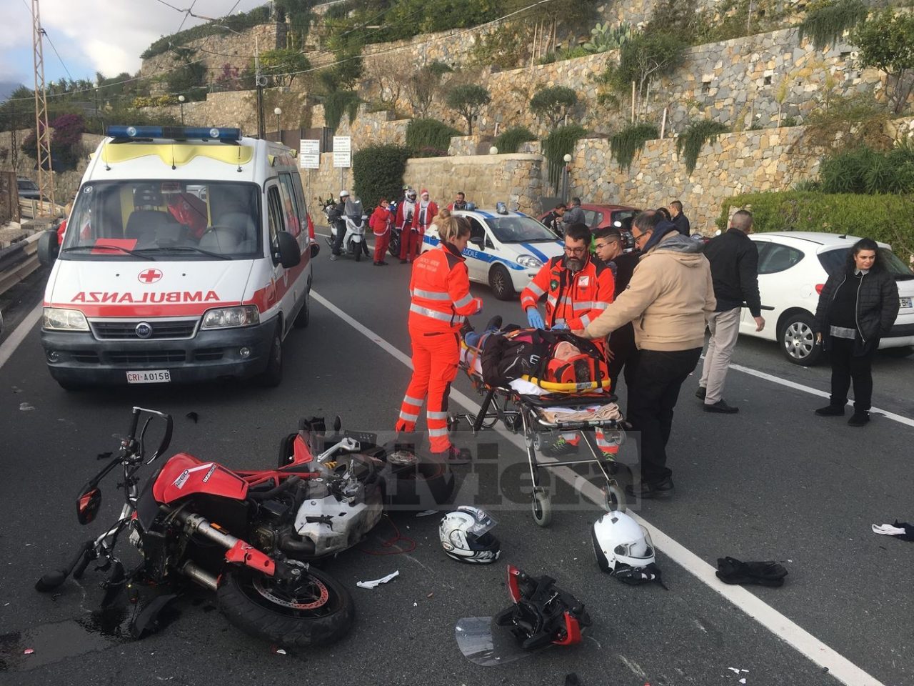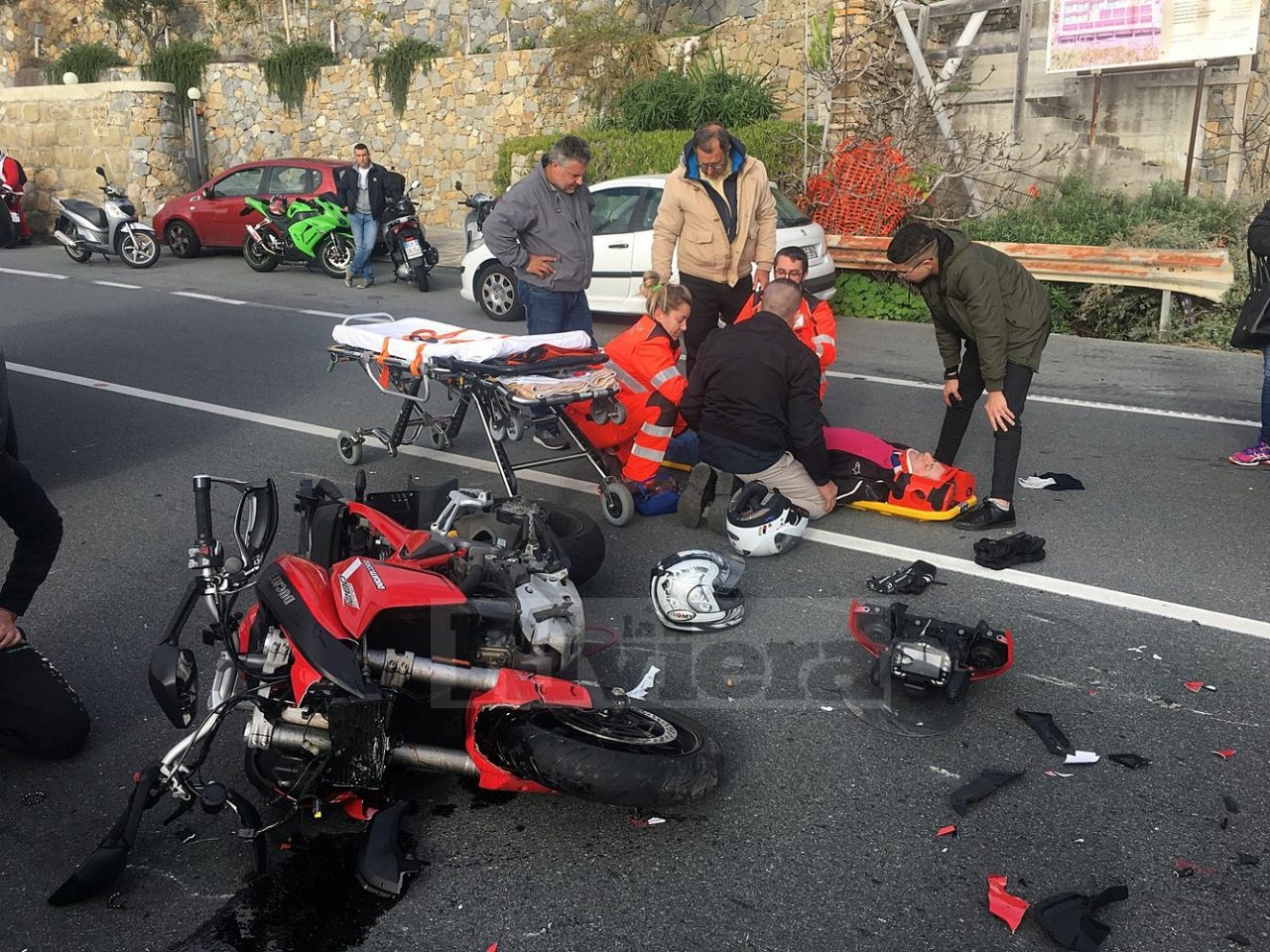 Due motociclisti sono rimasti feriti, sull’Aurelia, all’altezza di corso Mazzini, a Sanremo, per colpa di una donna anziana, uscita da una via laterale, mentre viaggiava a bordo di una Fiat Panda, senza dare la precedenza. L’impatto è stato inevitabile, le moto sono andate distrutte. Sul posto è intervenuto il personale sanitario del 118, con la polizia municipale.