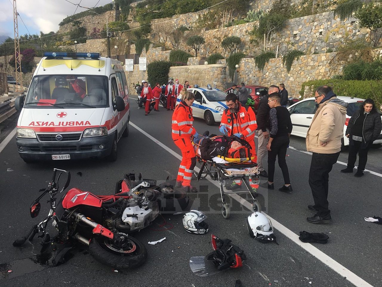 Le moto coinvolte sono una Ducati e un’Honda Cbr. Paura tra una comitiva di Babbi Natale motociclisti, sembra infatti – ma non è ancora accertato – che i due feriti appartengano al gruppo. Almeno uno dei feriti, sembra che non indossasse la casacca. I Babbi Natale, comunque, si sono fermati a prestare soccorso