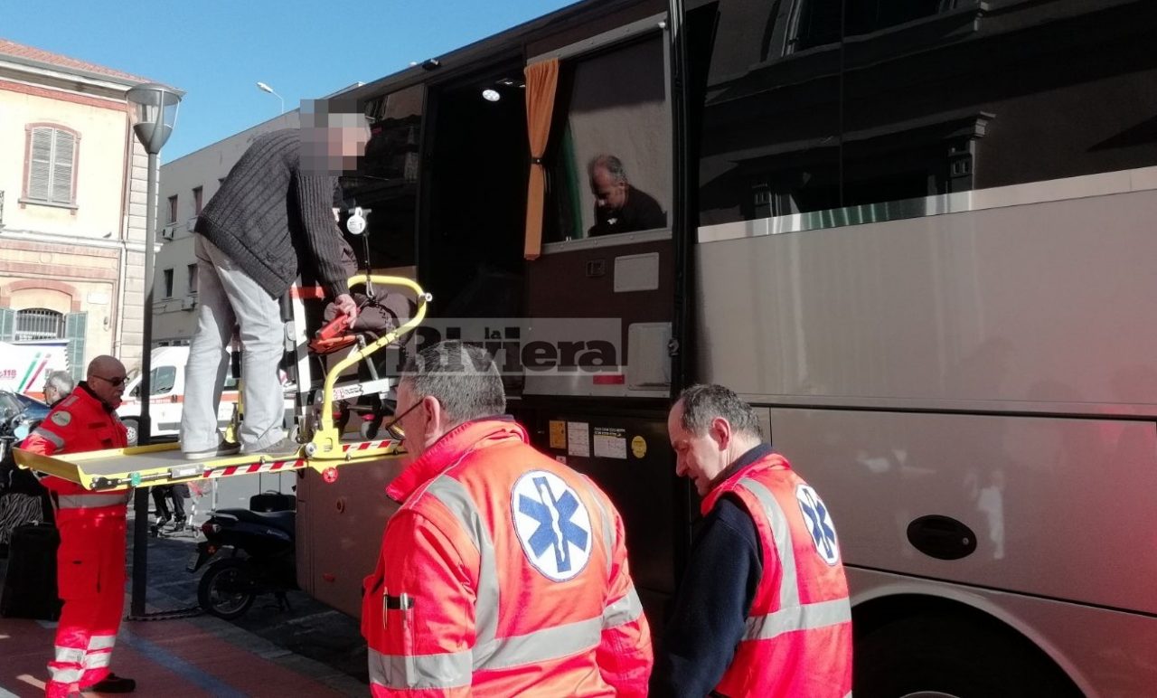 Alle operazioni di trasbordo partecipano la protezione civile con la Croce Verde Intemelia e la Croce Rossa. Centosettanta pellegrini sono “allettati” e le procedure di trasferimento, quindi, sono complesse.