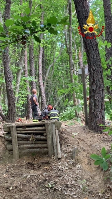 La squadra arrivata sul posto ha dovuto tagliare alcune piante della vegetazione per permettere all'elicottero di verricellare l'uomo