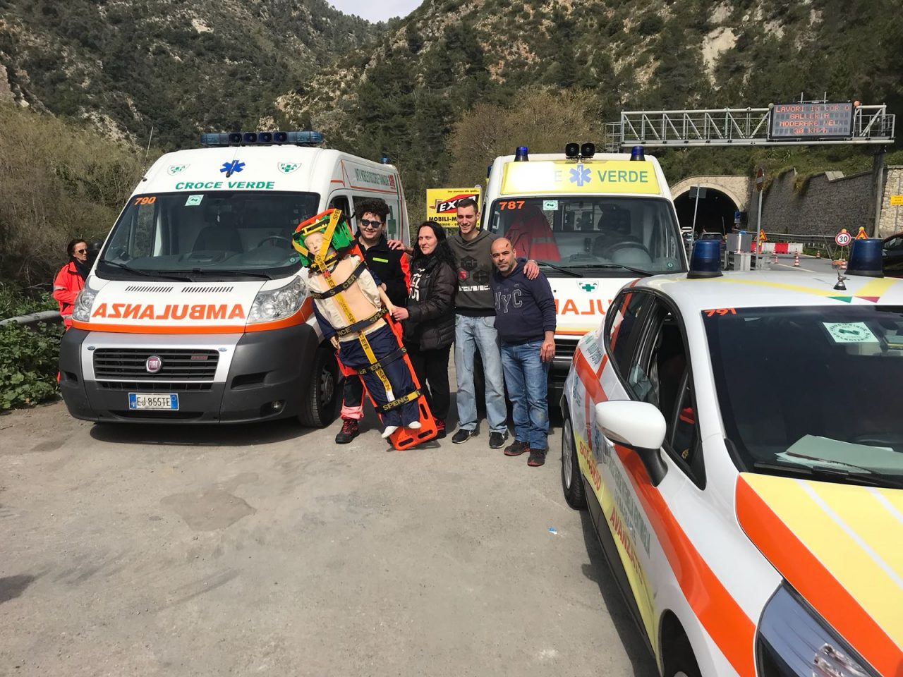 Due gli scenari: nel primo caso è stata simulata una caduta dal ponte, col ferito finito nel letto del fiume. Nel secondo caso è stata simulata una rissa tra due ubriachi con cocci di vetro rotto, il tutto si è svolto in scenario di ambiente aperto (vecchia statale 20 tra trucco e airole).