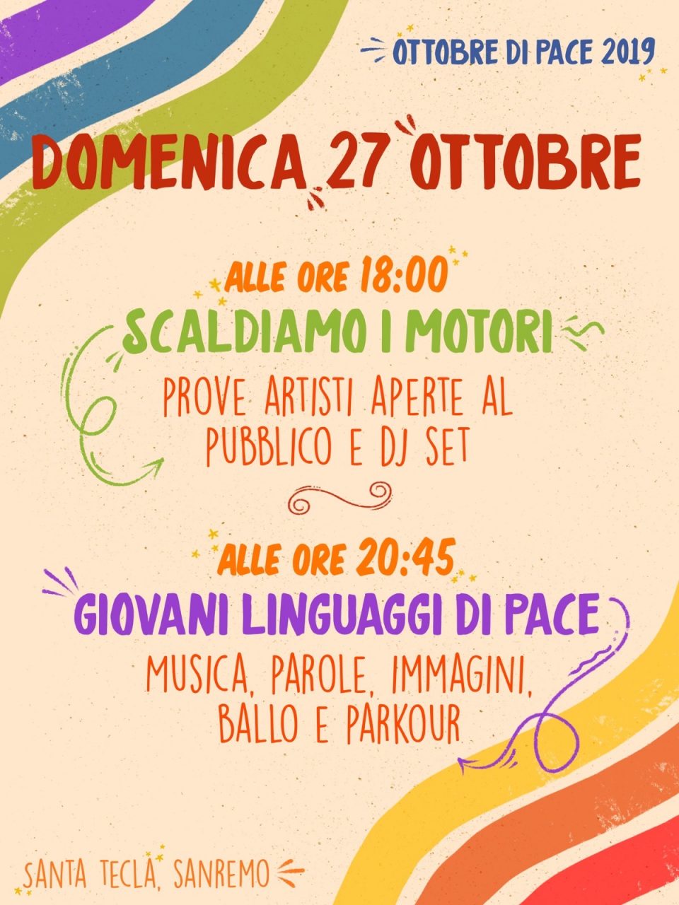 Alla Santa Tecla di Sanremo, il 27 ottobre per Ottobre di Pace, una serata con un palcoscenico pieno di ragazzi e con un intrattenimento moderno.
